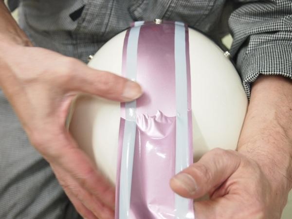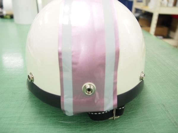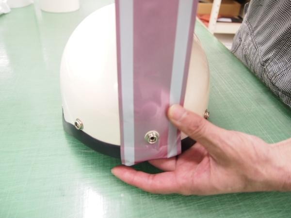 中央用のチェッカーラインは端から3cmのところに直径1.5cmの丸穴があけてあるので、お手持ちのヘルメットの金具などの位置にカッターで簡単に合わせるることができます。