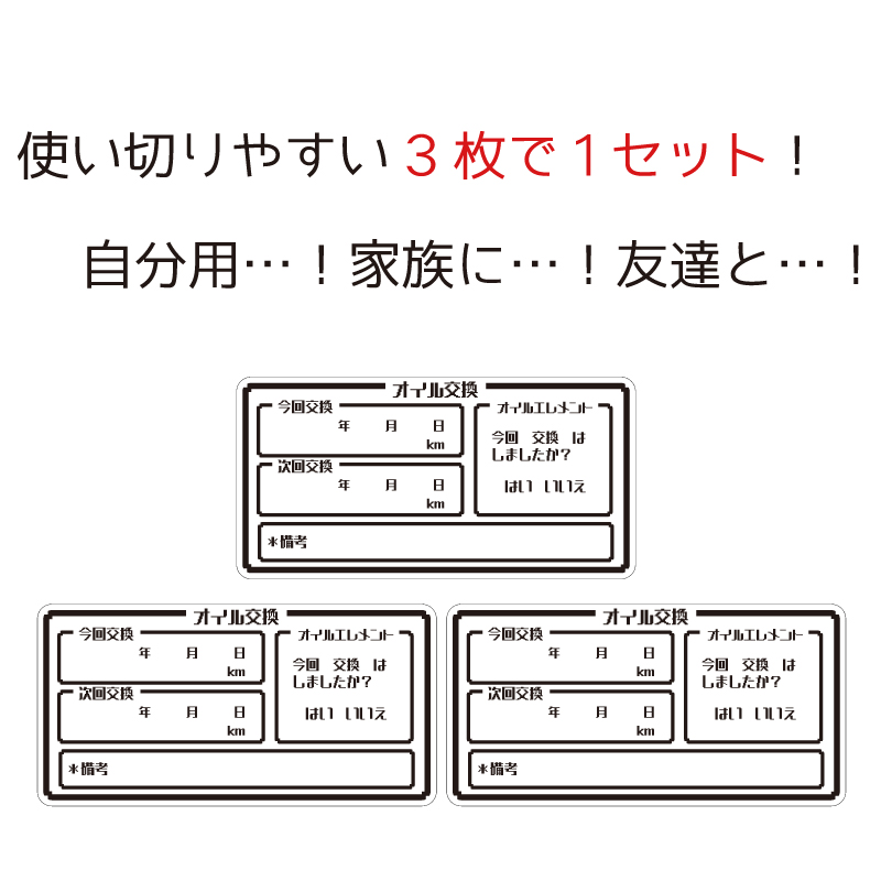 エンジンオイル交換ステッカー、シンプルなのもつまらない、ちょっと変わったのにしてみたい…