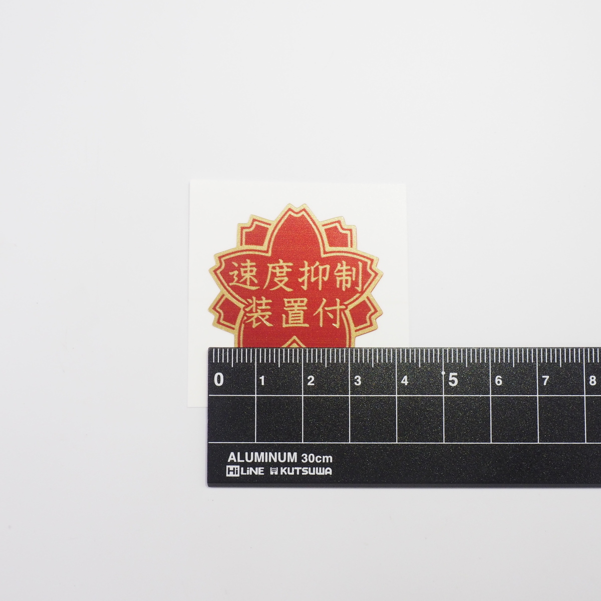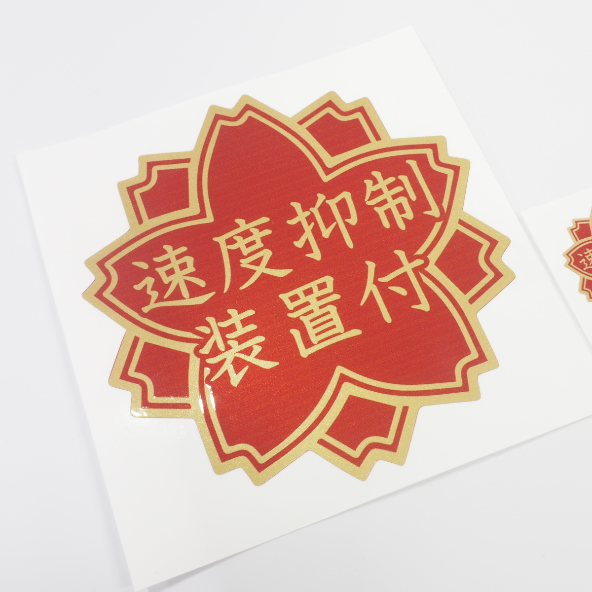 「速度抑制装置付」ステッカー 2枚セット 12cm 3.8cm 桜 赤ベース金文字 デコトラ ダンプ 大型車 ギガ スーパーグレート プロフィア