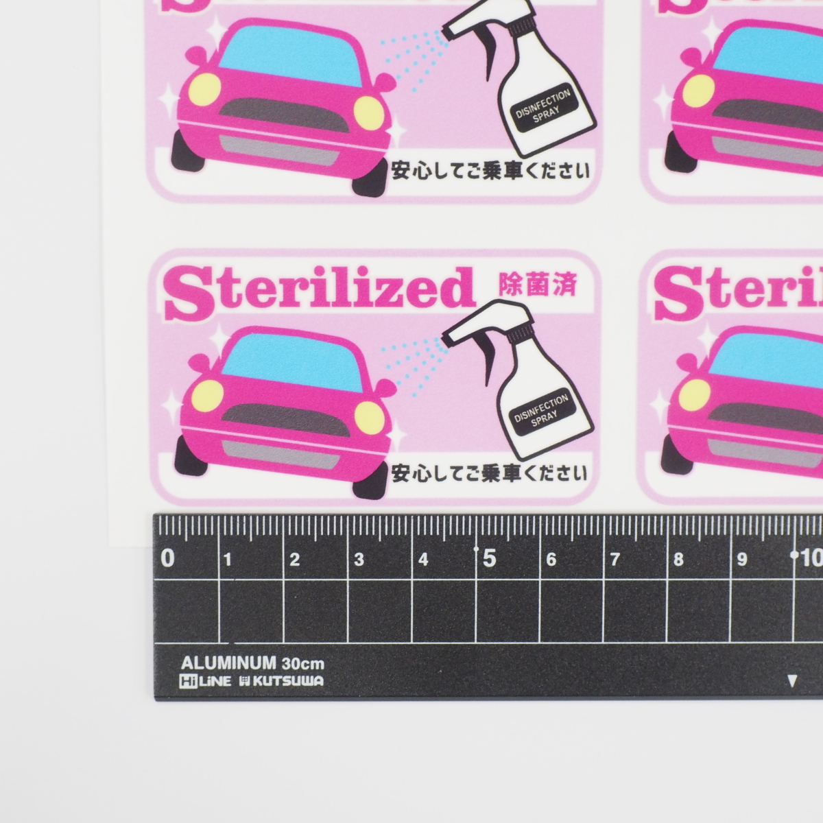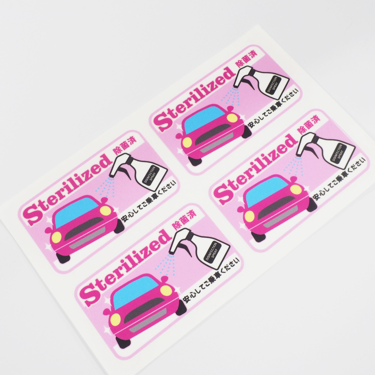 代車 レンタカー タクシーに 除菌済ステッカー 除菌 消毒 コロナ対策 感染予防 除菌シール ウイルス対策 ピンク色 4枚セット