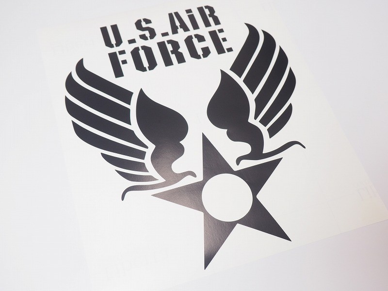 U.S.AIR FORCE アメリカ空軍 カッティングステッカー 20cm×24cm 黒 ミリタリー ステンシル アメリカン 切り抜き