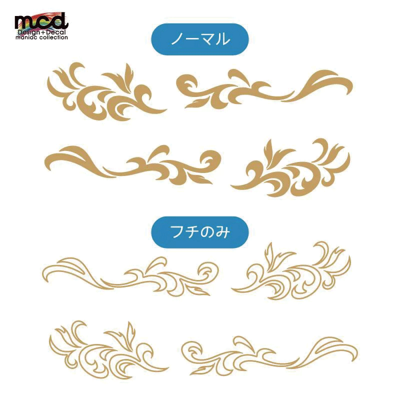 【ゴールド】ゴールドリーフ カッティングステッカー 左右セット フレア バイクカスタム タンクカスタム かっこいい シンプル 初心者 転写シート付き 簡単 トライバル