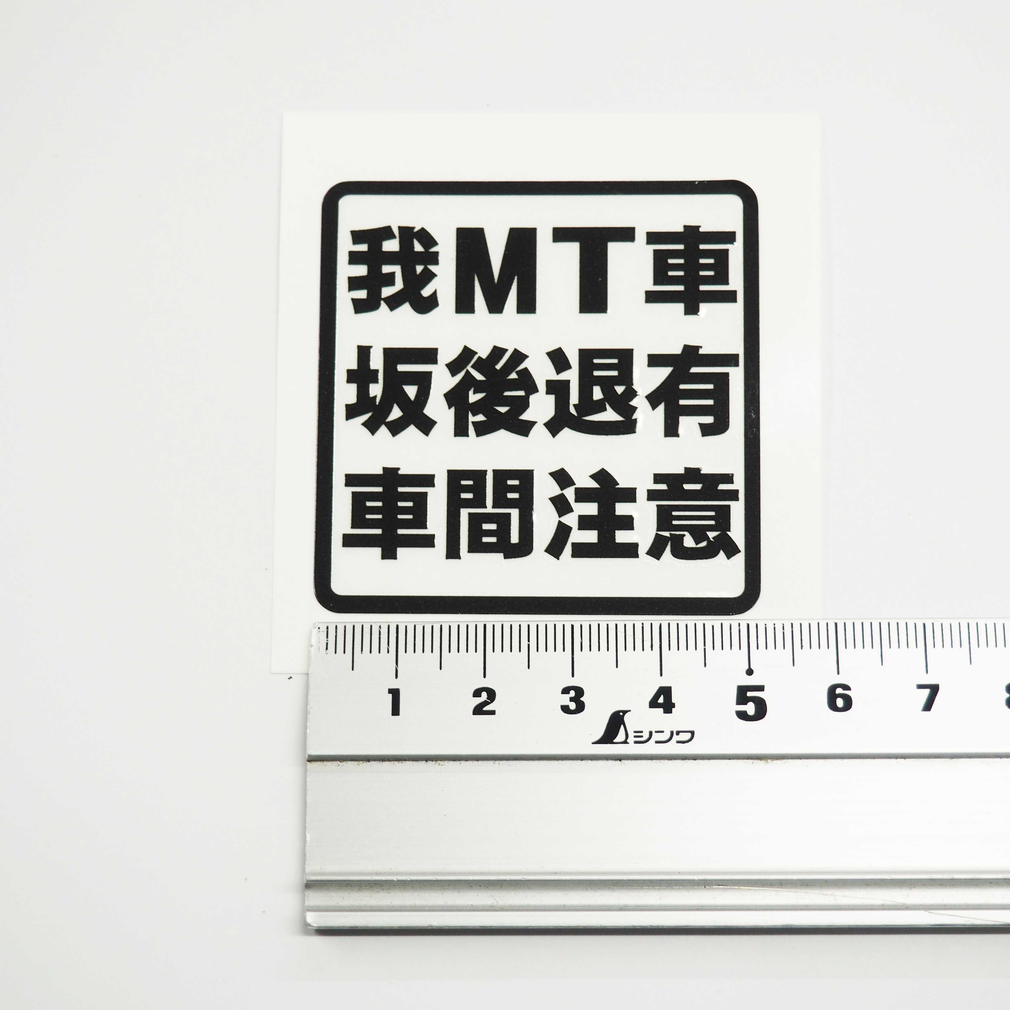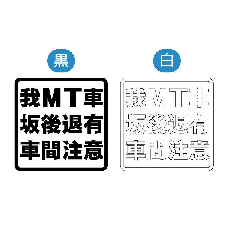 「我MT車(ナリ)、坂(道)後退有(リ)、車間(距離)注意」
