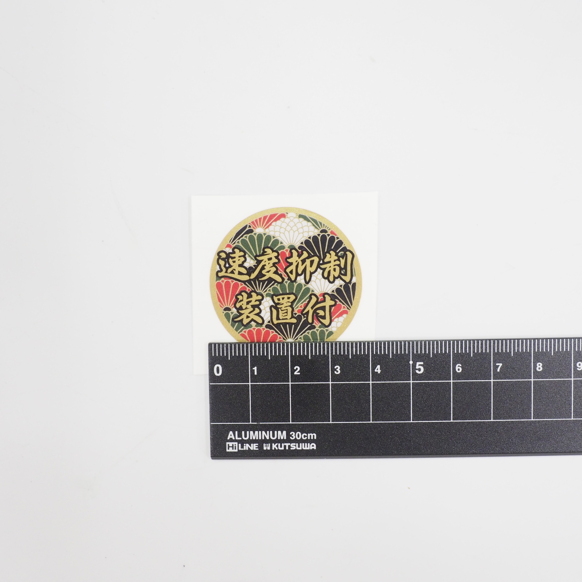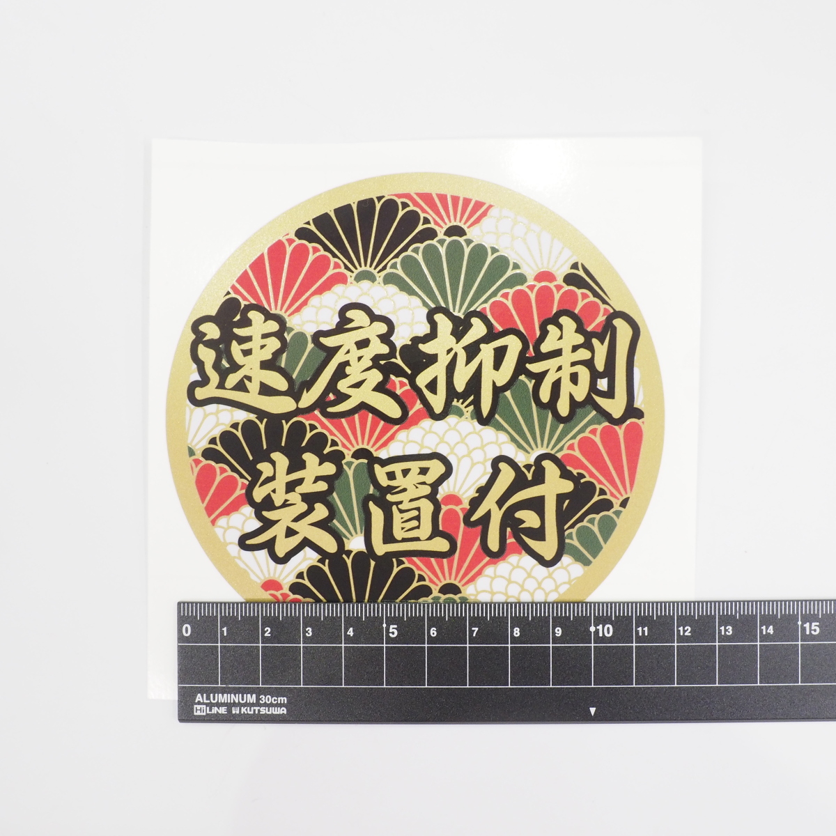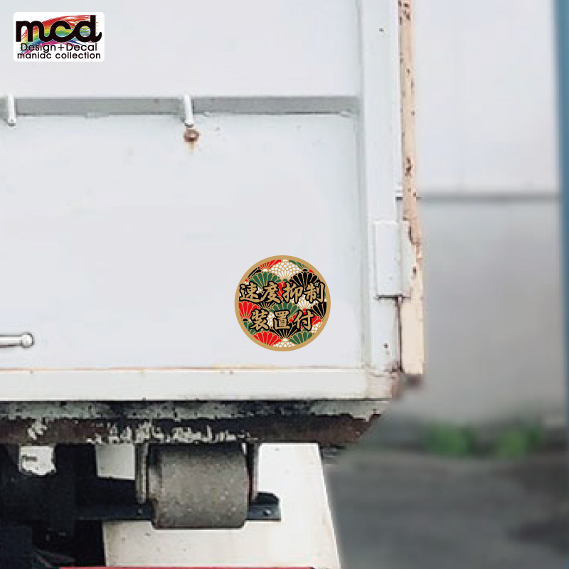 トラックに和柄の菊模様ゴールドの速度抑制ステッカーです。