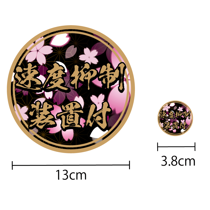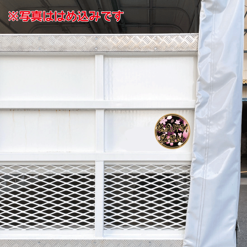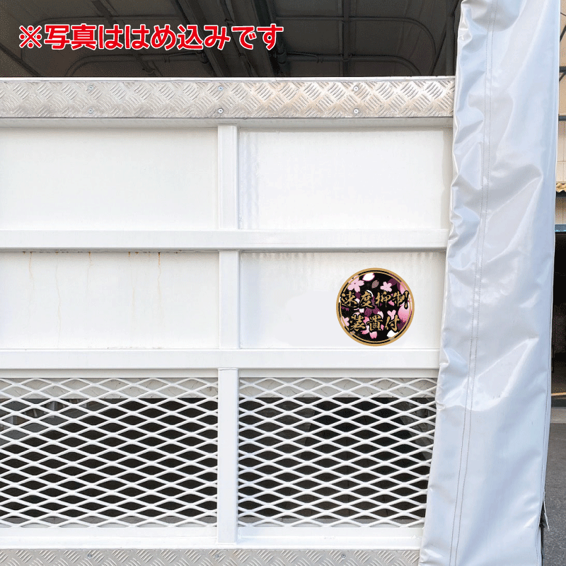 トラックに金色と桜吹雪がかっこいい速度抑制ステッカーです。
