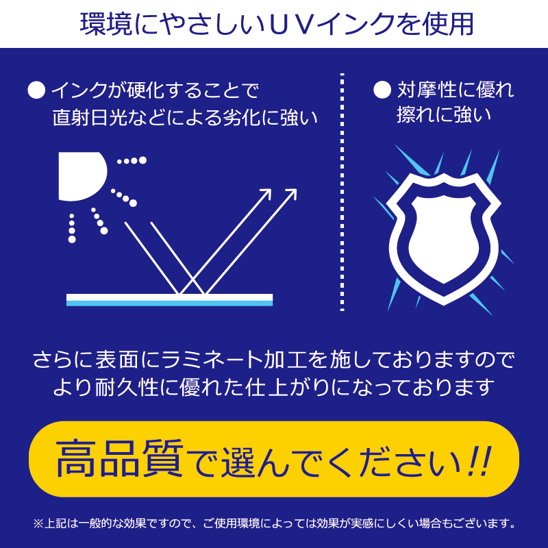 水濡れに強い屋外使用可能なステッカーで、対候性も抜群です。