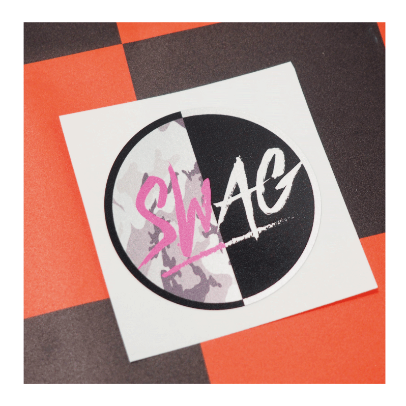 (メタリック) SWAG ワンポイントステッカー カモフラ グレー グリーン 5.5cm 迷彩 camouflage スラング HIPHOP USDM JDM バイク パソコン スマートフォン ノートパソコン iPad 丸型 英字 STICKER 防水