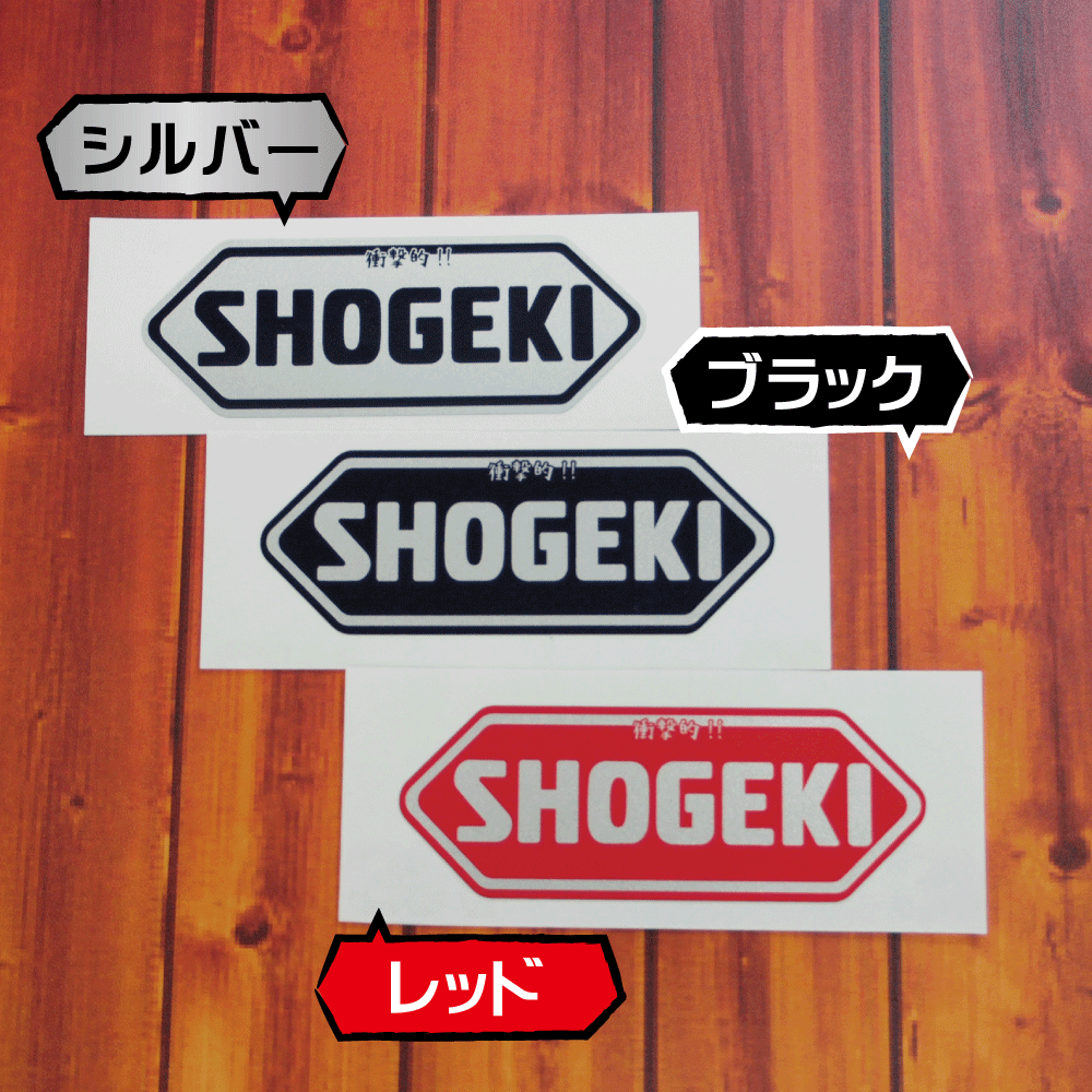 (シルバー)おもしろステッカー 衝撃 「SHOGEKI」1枚 9.8cm おもしろ 工事現場 工場 構内 ステッカー ヘルメット デカール 現場監督 作業員 倉庫 交通安全 自転車 バイク パロディ ネタ