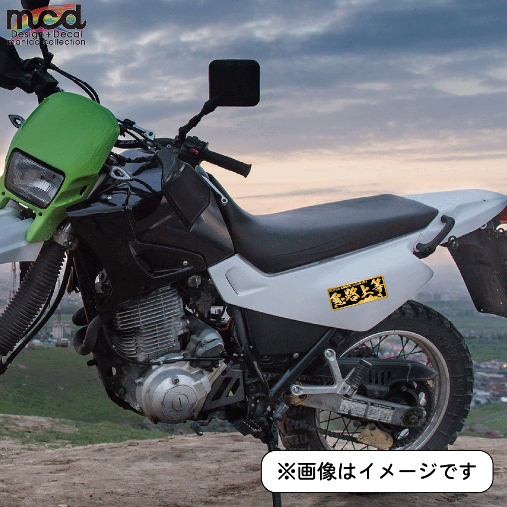 ラミネート加工により雨風に強く、バイクのボディにも貼れます。