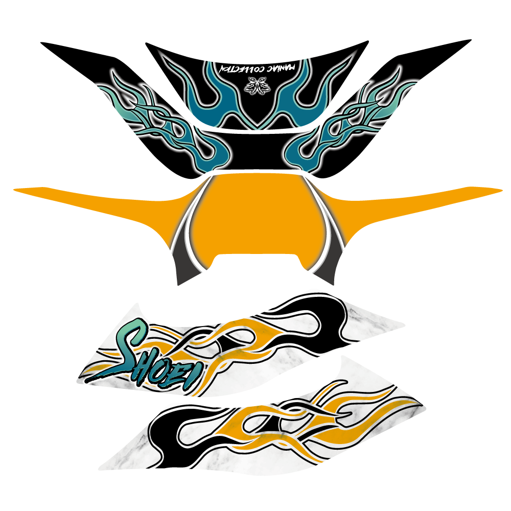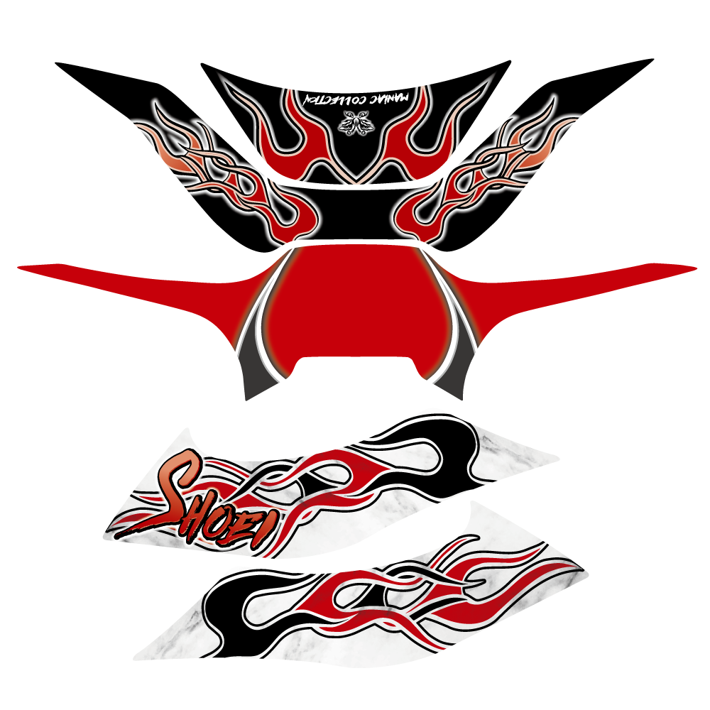 人気のファイヤーデザインを落とし込み、カラー分割による初心者でも貼りやすい仕上がりとなっております。