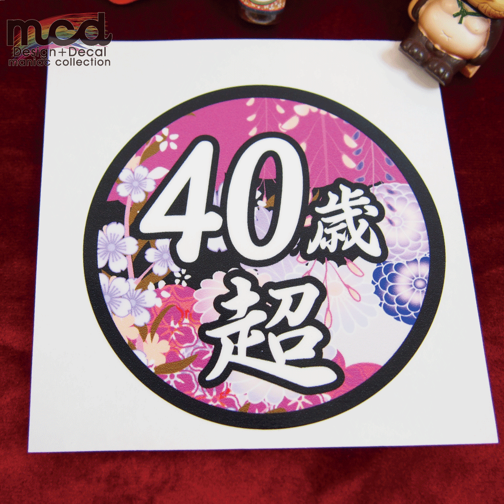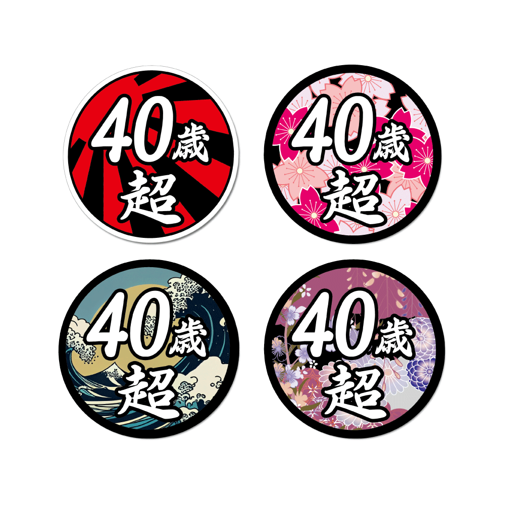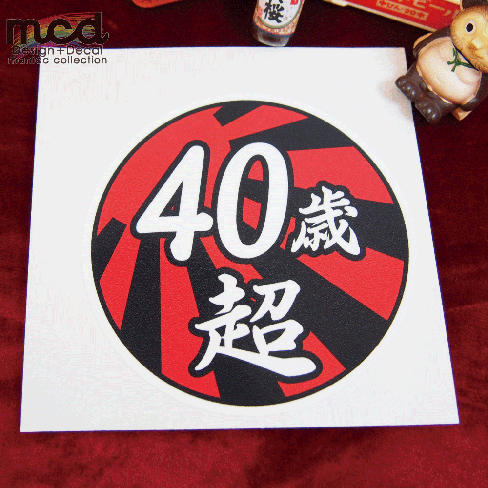 面白ステッカー 40歳超え 9cm丸 ネタ おもしろ パロディ ギャグ ユニーク デコトラ ダンプ 積車 トラック 20トン 大型 トラック ワンポイント 丸型 新規格車 おじさん おっさん アラカン 40代 特車 和柄 日章 花 粋 カラフル 華 桜 かっこいい