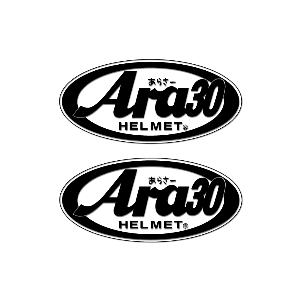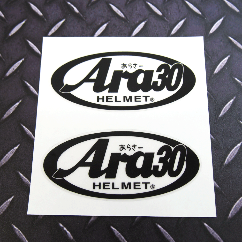 (透明)2枚セット 黒ベース「Ara30」 アラサー ステッカー パロディ デカール バイク ヘルメット 9cm×4cm おもしろ シール arai ジョーク ヘルメットカスタム クリア素材 Arai