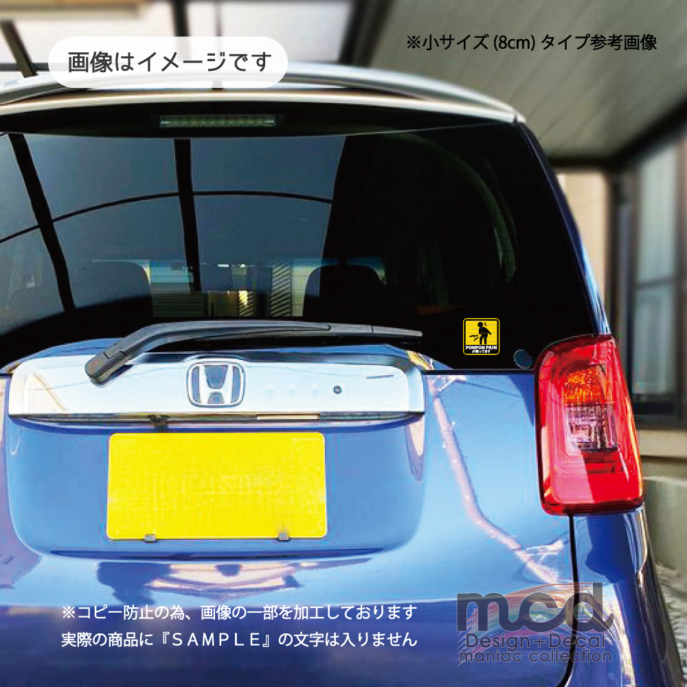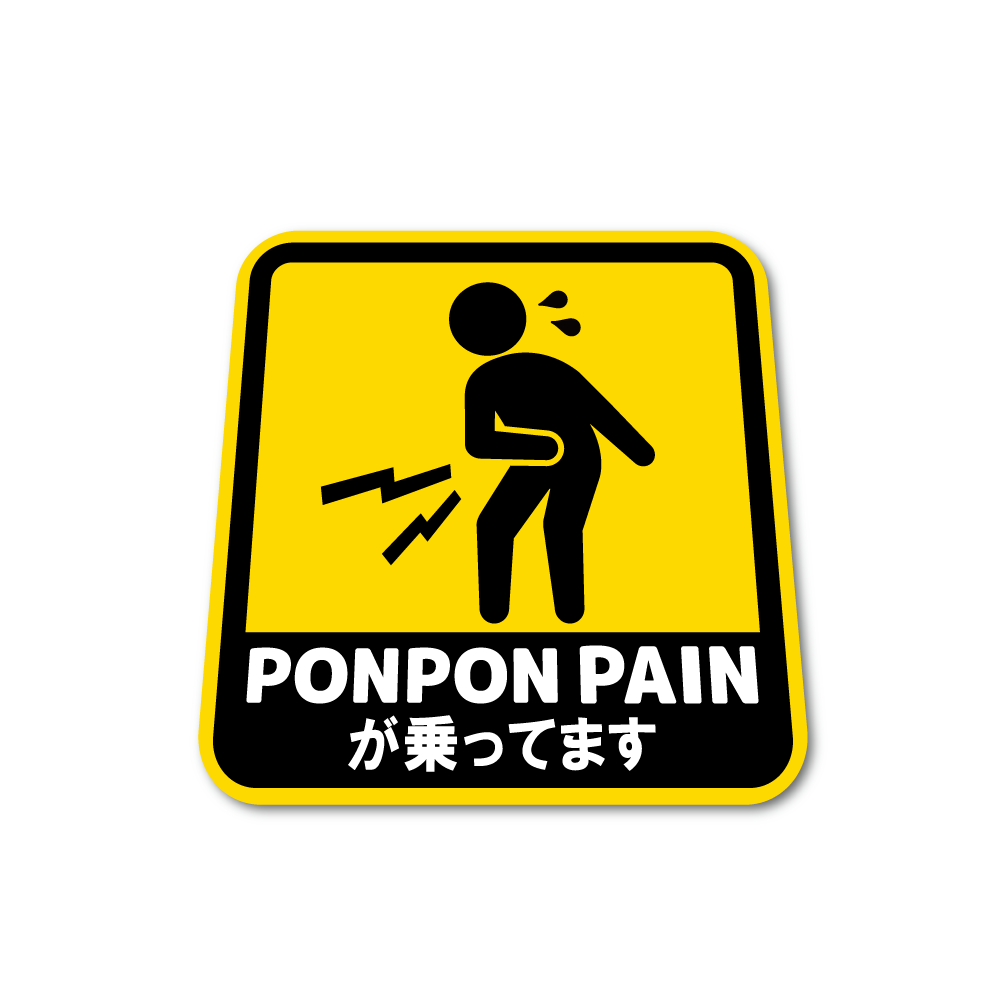 (反射) 面白カーステッカー ポンポンペインが乗ってます 小 8cm ワンポイント カー アクセ アクセサリー ネタ ユニーク ユーモア おもしろ 笑 笑い 交通安全 お守り 煽り防止 車間距離 無事故 事故防止 イエロー 表示 シール デカール 自動車