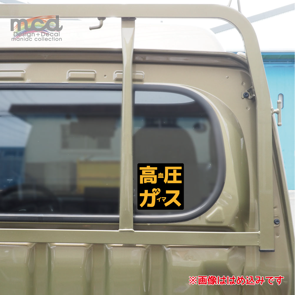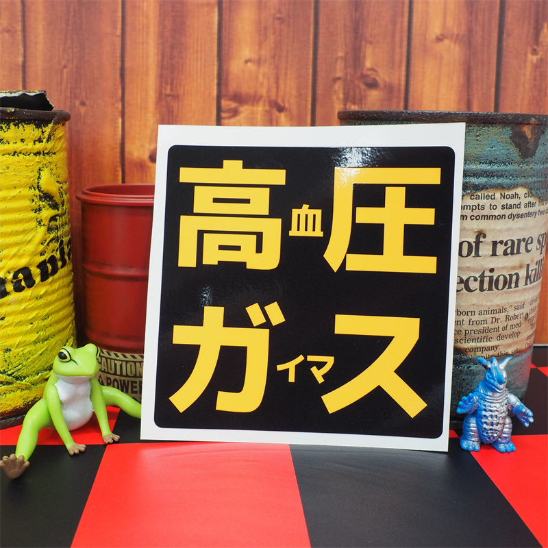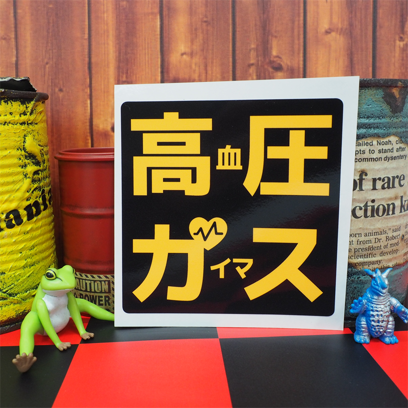 おもしろパロディステッカー 高血圧がいます 高血圧ガイマス 【正方形 10cm】 高圧ガス トラック デコトラ ワンポイント ジムカーナ レース パロディ パロ ネタ 普通車 乗用車 デミオ フィット ヴィッツ RS スイフト スイフトスポーツ コルト おやじギャグ