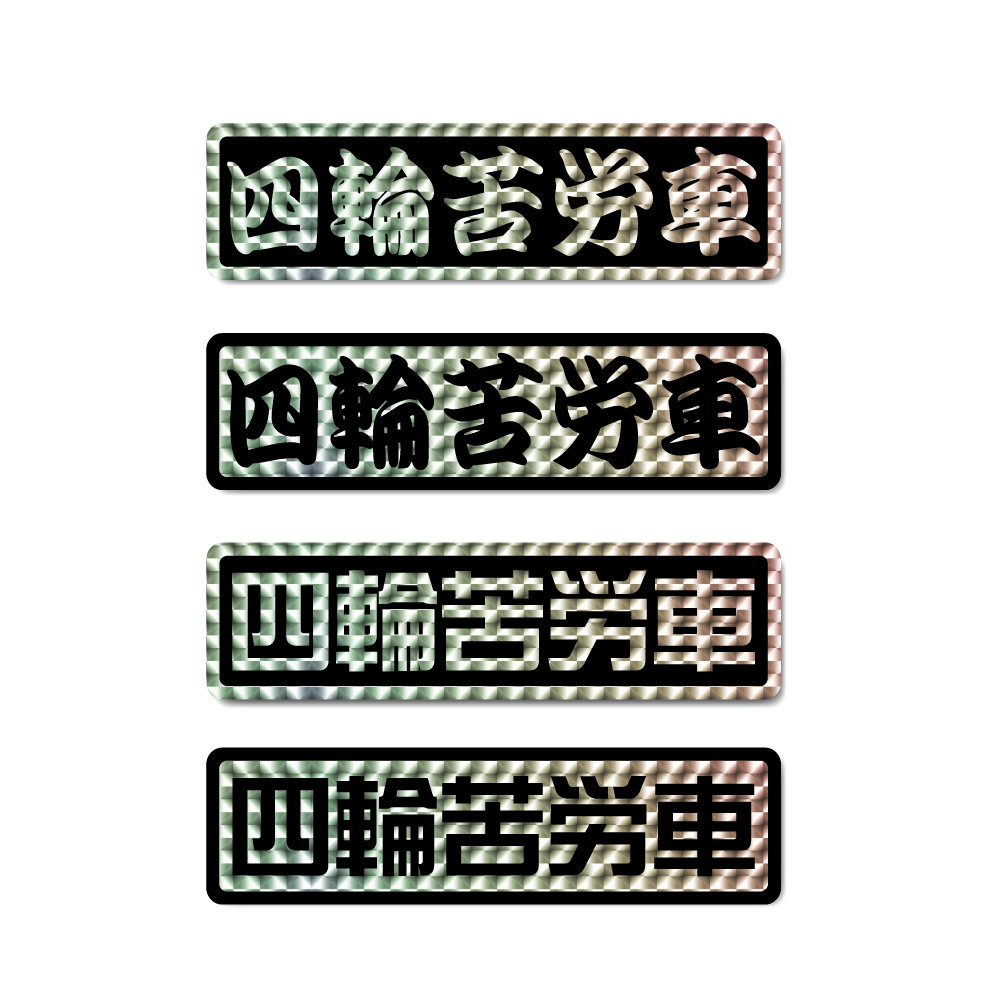 キラキラホログラム素材の面白ステッカー「四輪苦労車」です。