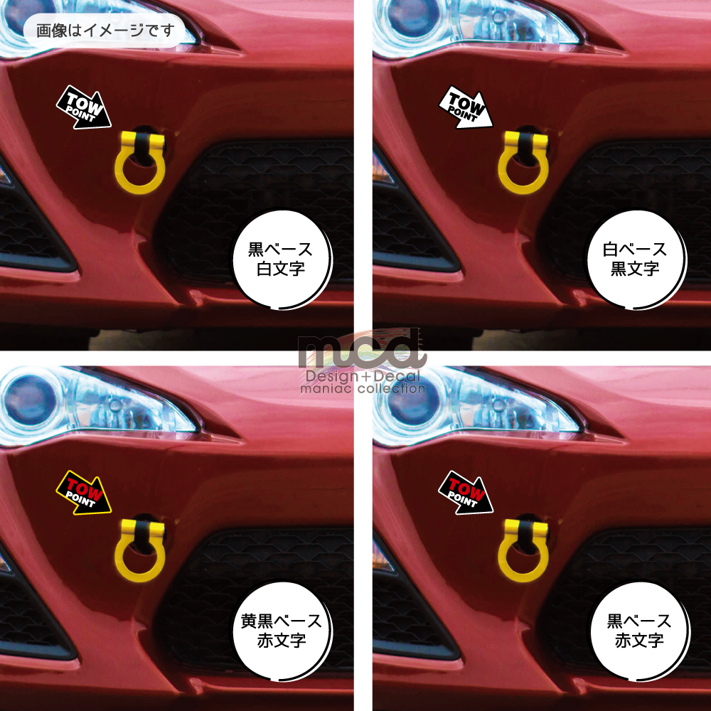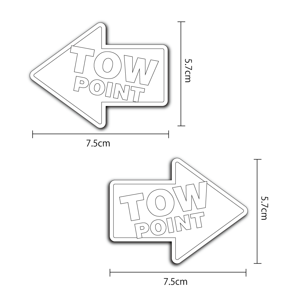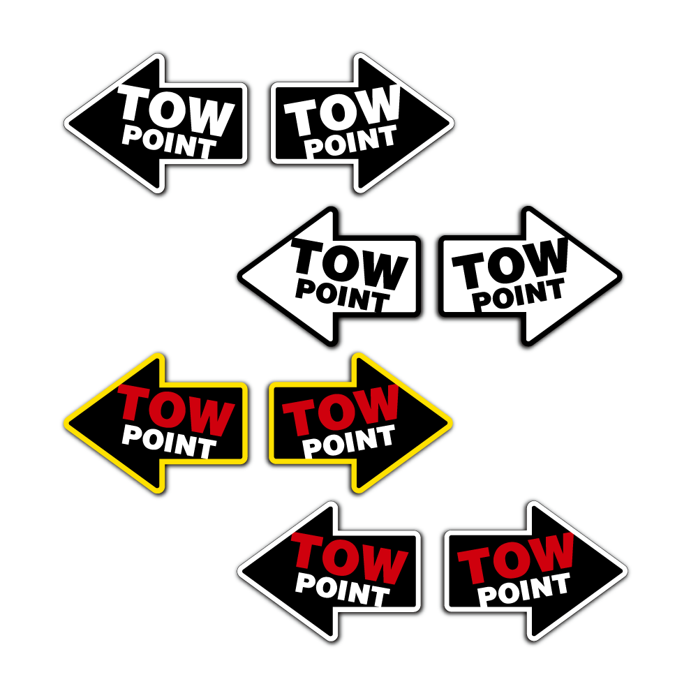 牽引フック位置の目印に。矢印タイプのステッカーです。