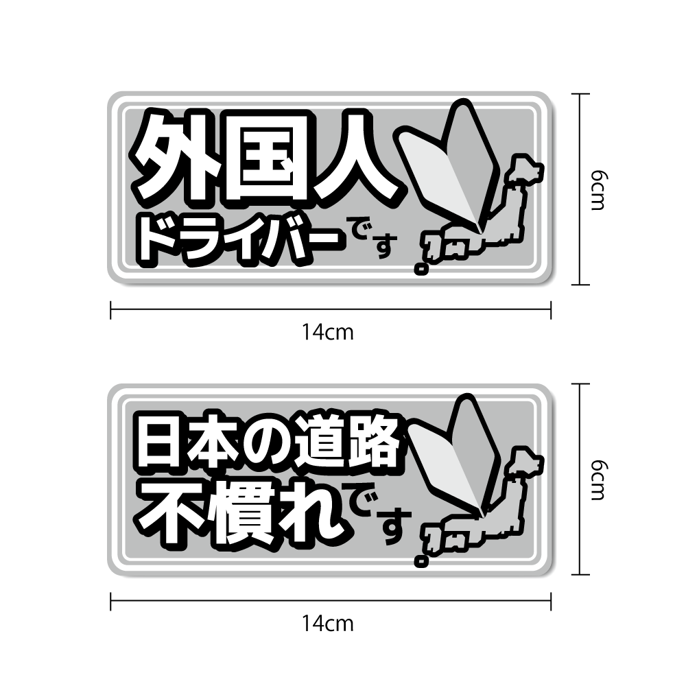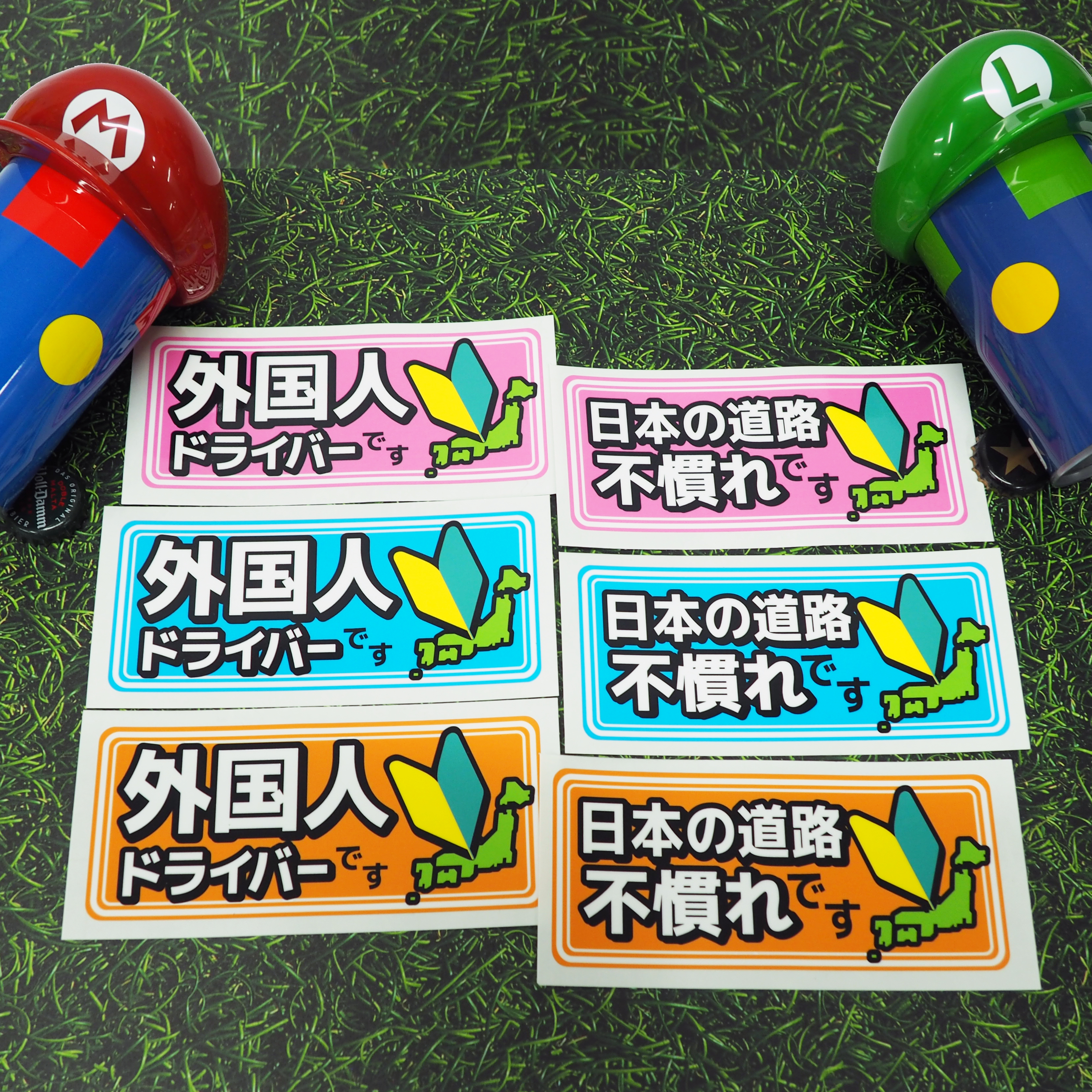 日本の道路に不慣れな外国人さん向けのカーステッカーです。レンタカーやマイカーへの貼り付けで周囲に注意喚起しましょう。もちろん、海外生活が長く、帰国したばかりで不安なドライバーさんなどでも。屋外使用可能な素材で対候性も抜群です。