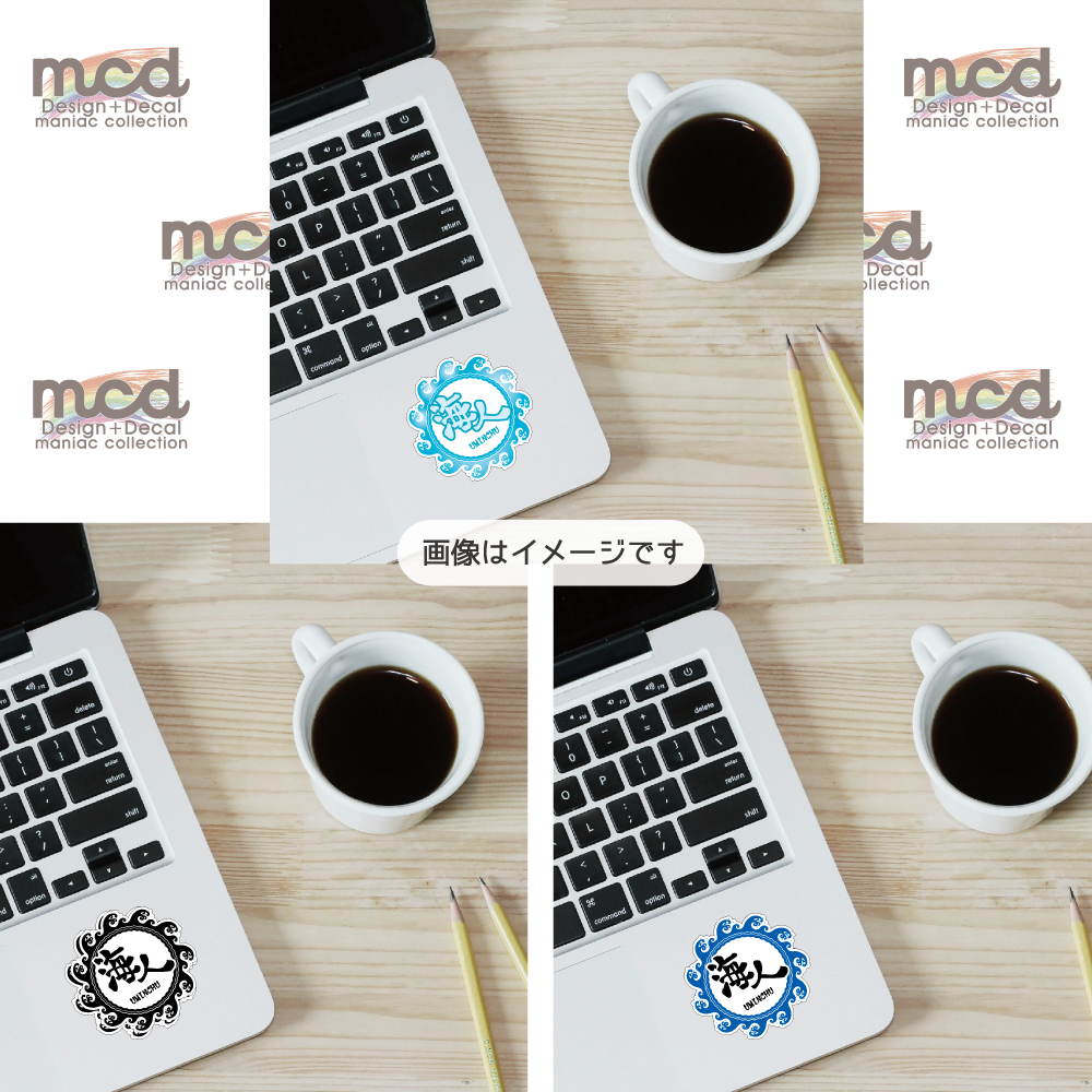 漢字と波柄を合わせたシンプルおしゃれな海人ステッカーです。