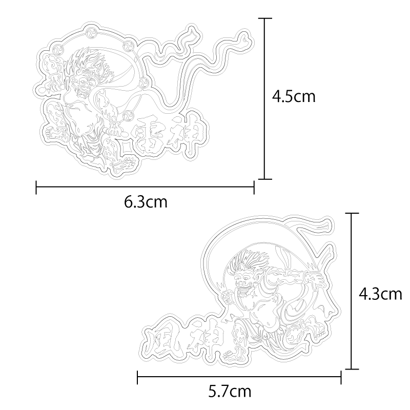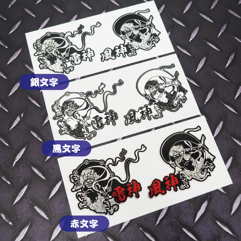 (マットミラー)風神 雷神 銀ステッカー ミニサイズ ワンポイント 縁起物 お守り 守り神 和風 和柄 カッティング 風神様 雷神様 シール デカール 屋外 防水 福の神 スマホ タブレット PC デコレーション 風神雷神