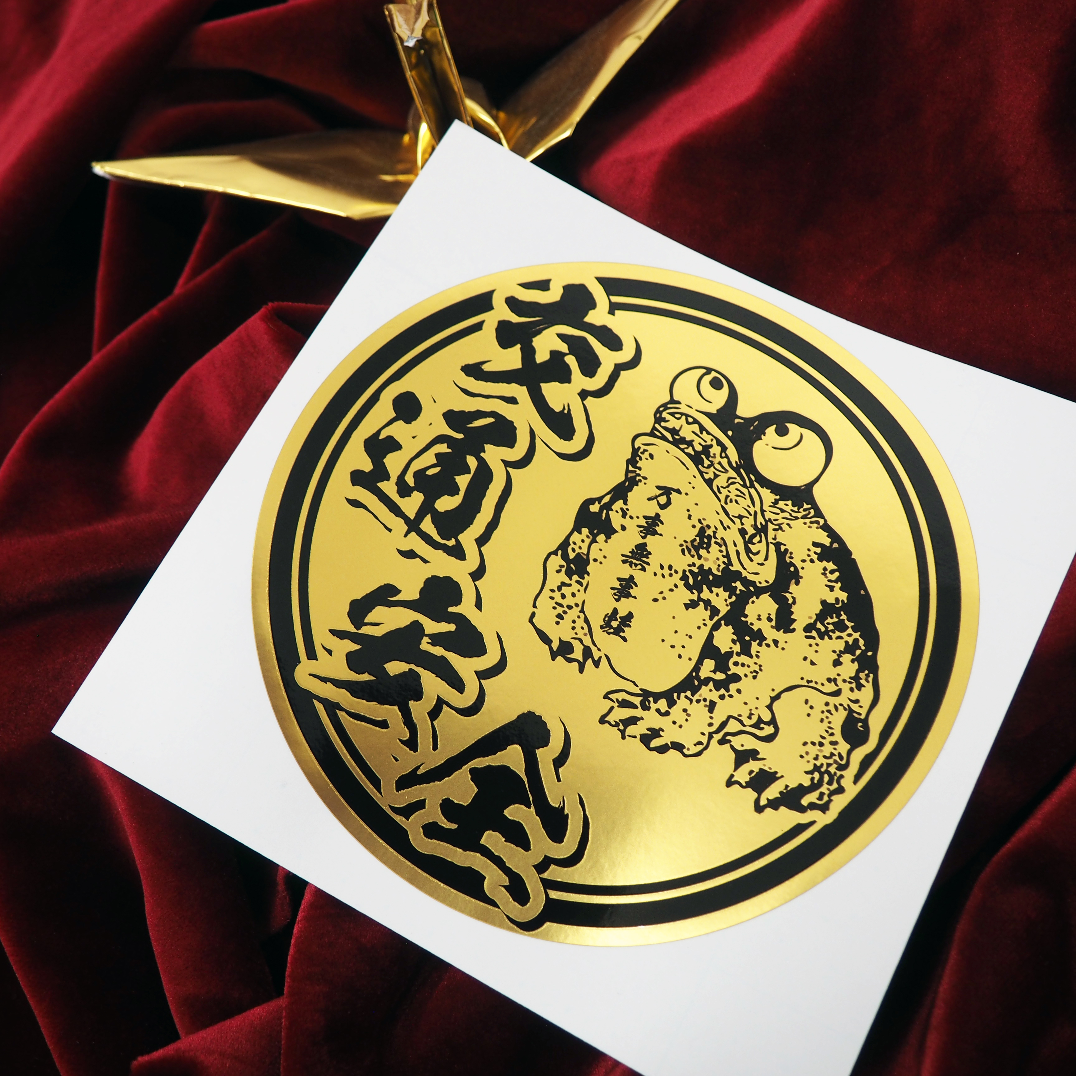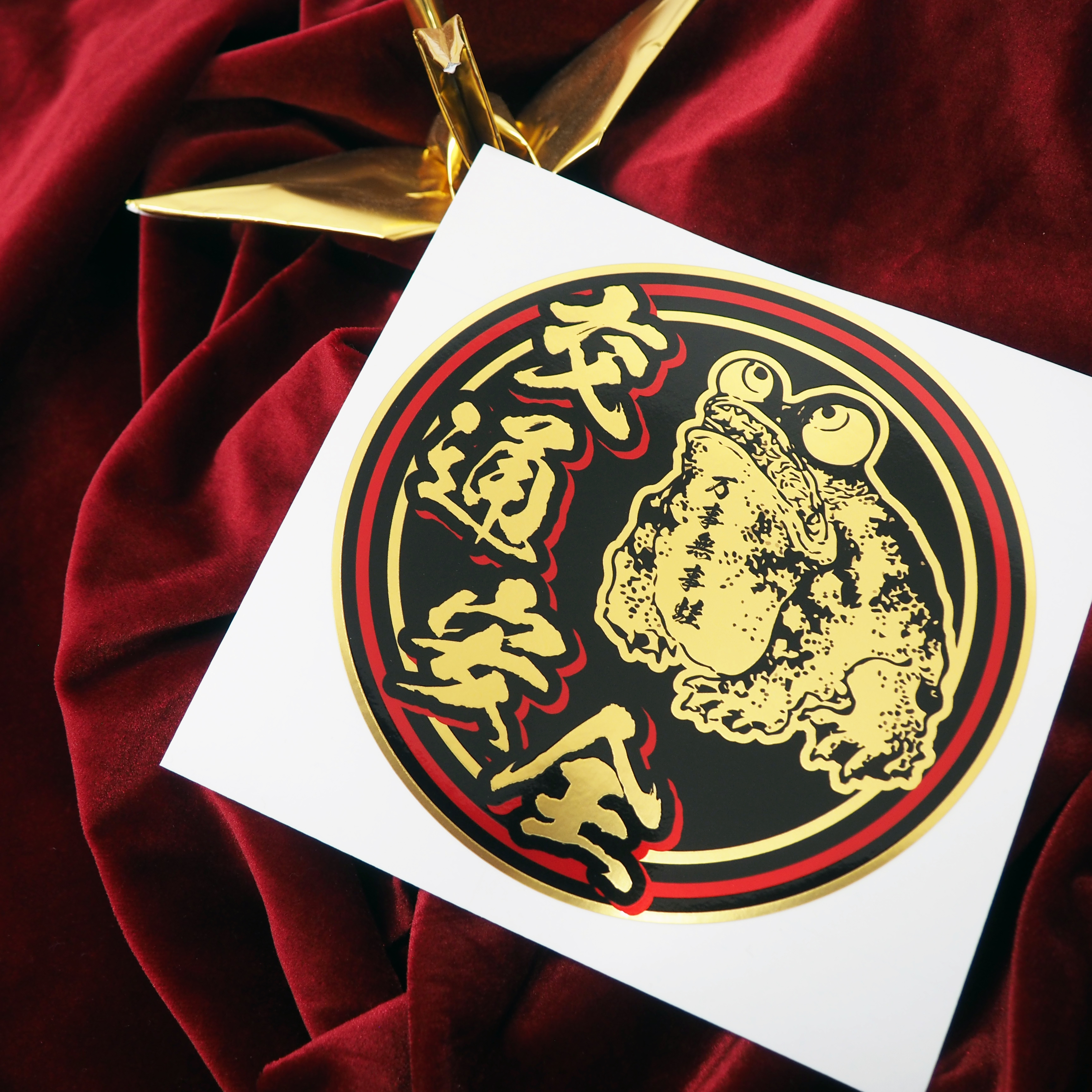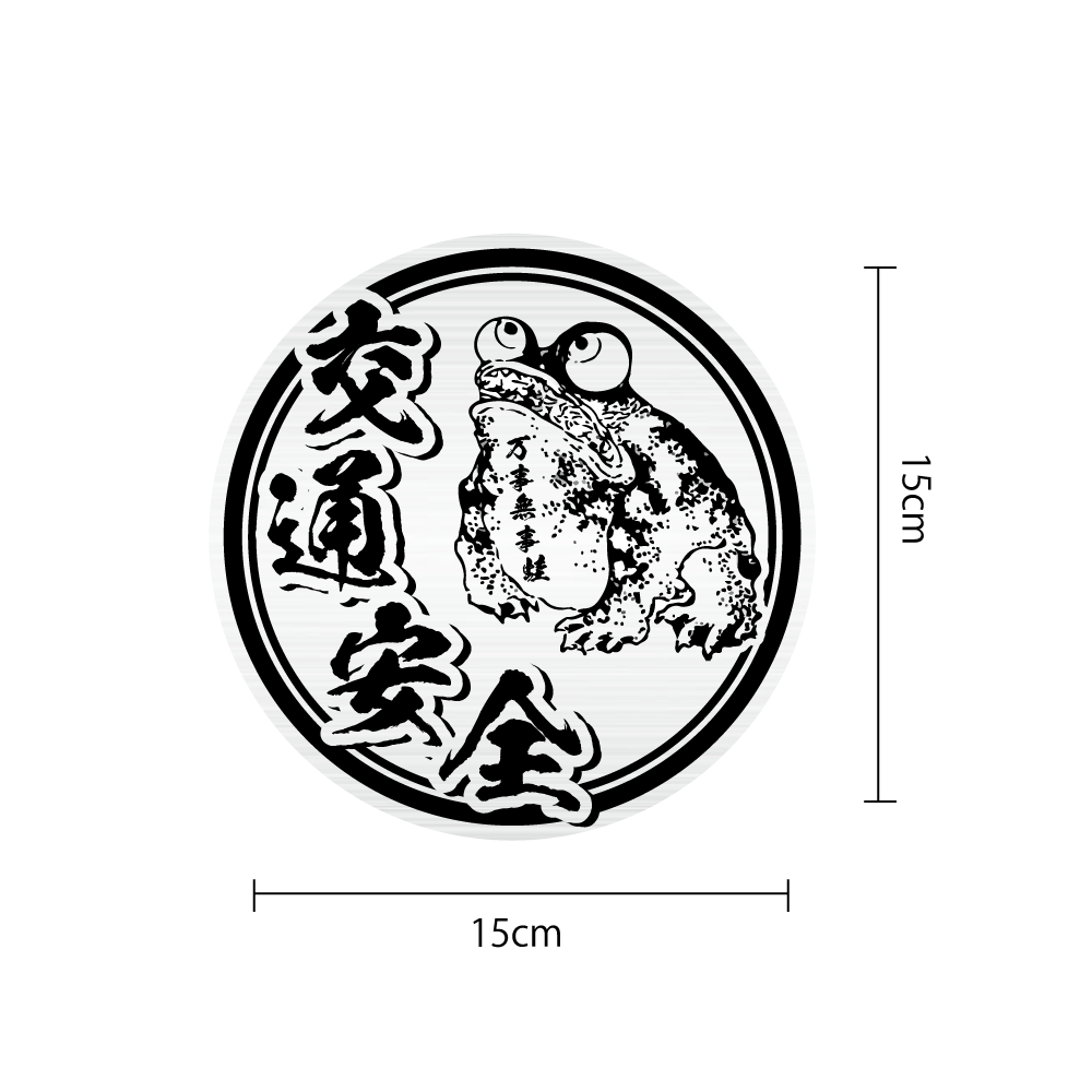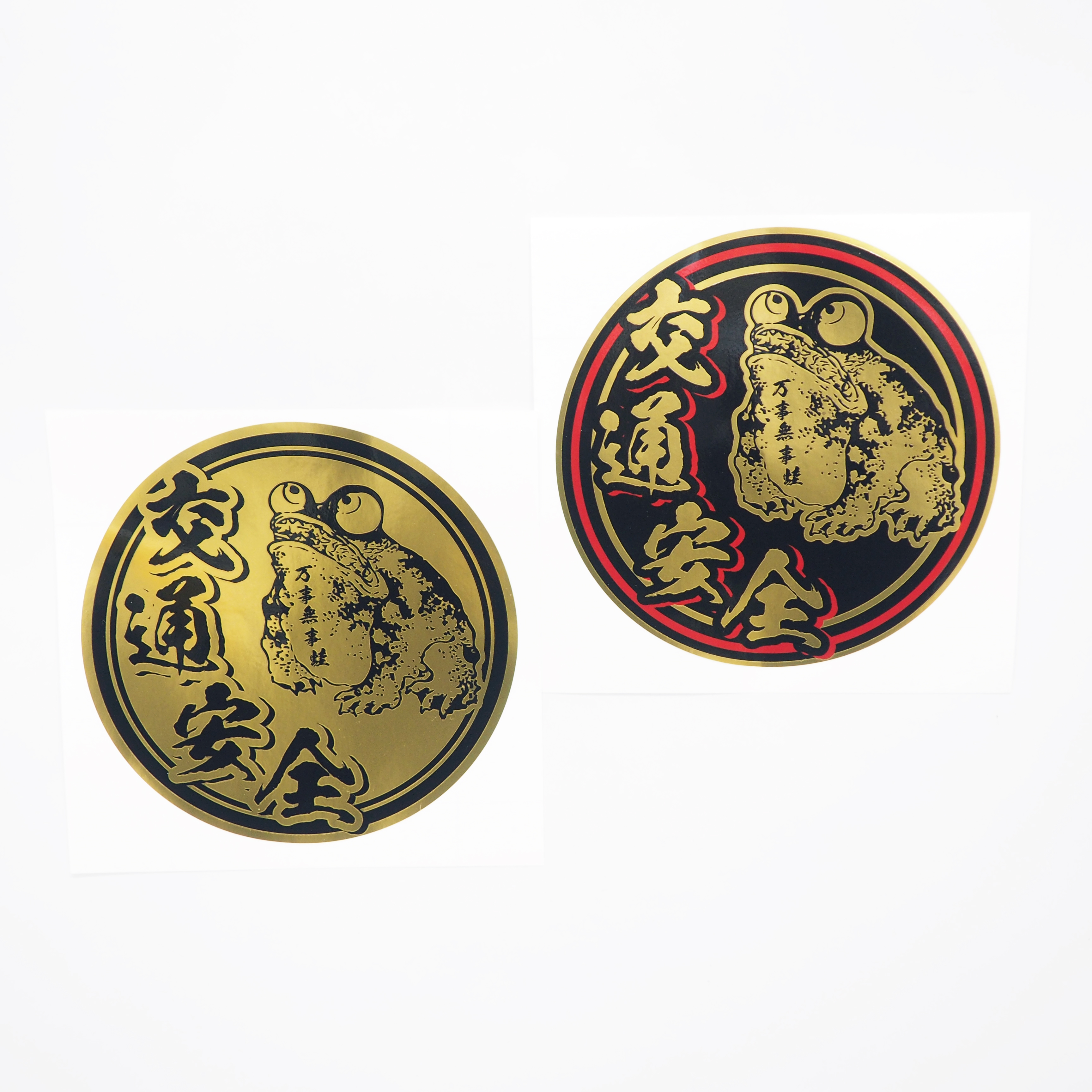 渋い蛙のデザインで一味違う交通安全ステッカーはいかがでしょうか。