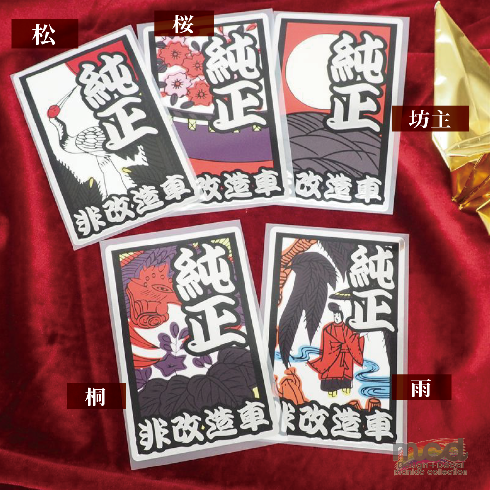素材は塩ビで曲面にも貼りやすく、切り抜き済みなので貼るだけ!ラミネート済みなのでクリア塗装をかけなくてもOK。耐候性も上がっています。上からのウレタンクリア塗装(ラッカー不可)にも対応できます。