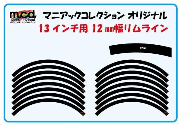13インチ用12mmリム ライン デカール 黒 12mm幅