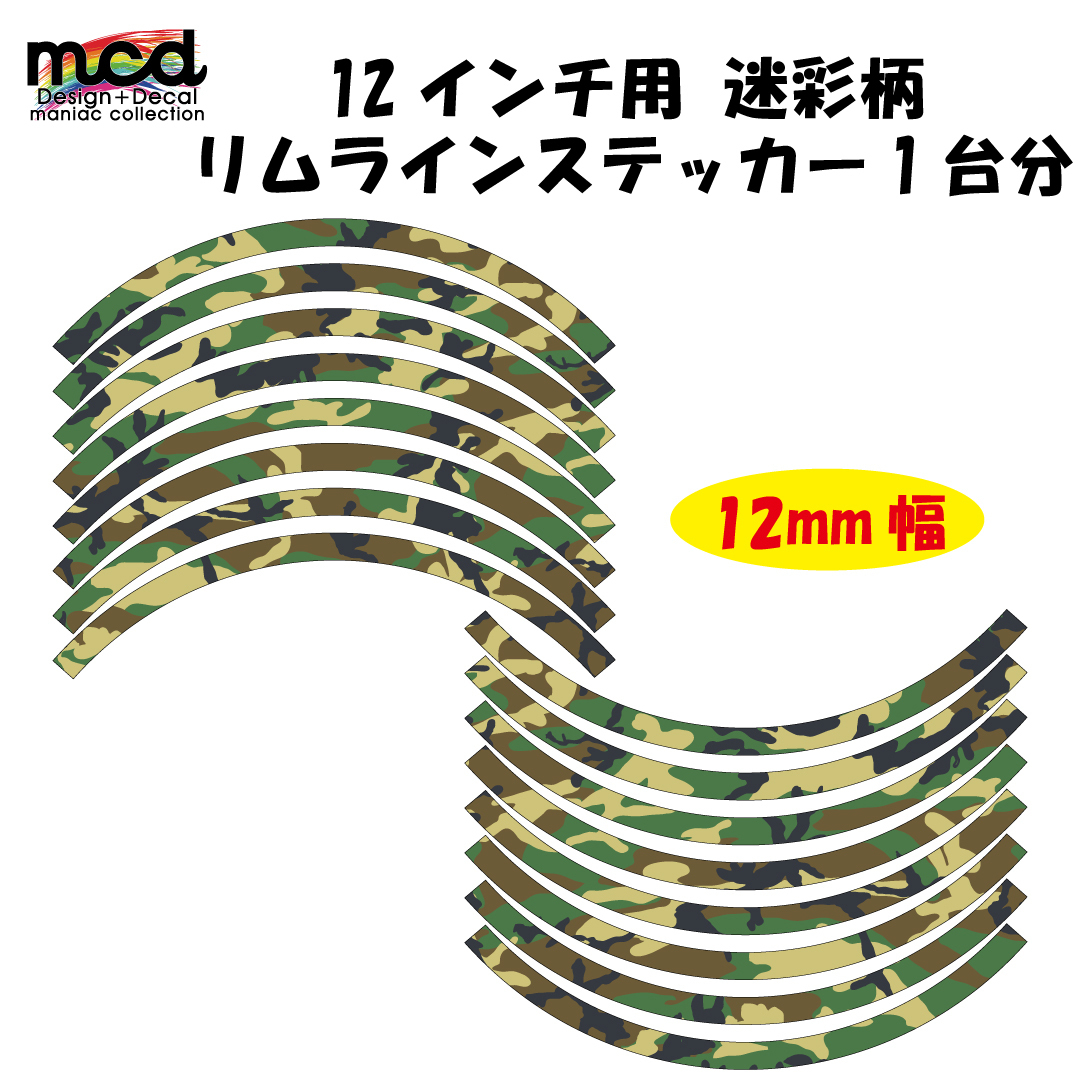 12インチホイール用 リムラインステッカー12mm 迷彩 緑 カモフラ スクーター フォルツァ マジェ 傷防止 リムガード