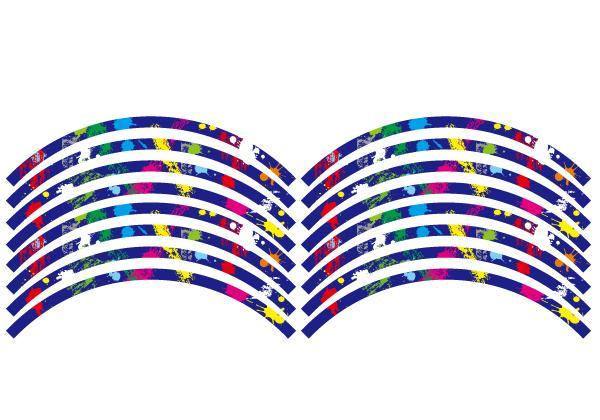 17インチホイール用 リムラインステッカー12mm 青 落書き インクスプラッシュ CBR250R YZF-R25 Ninja250 GSX250R等 傷防止 リムガード