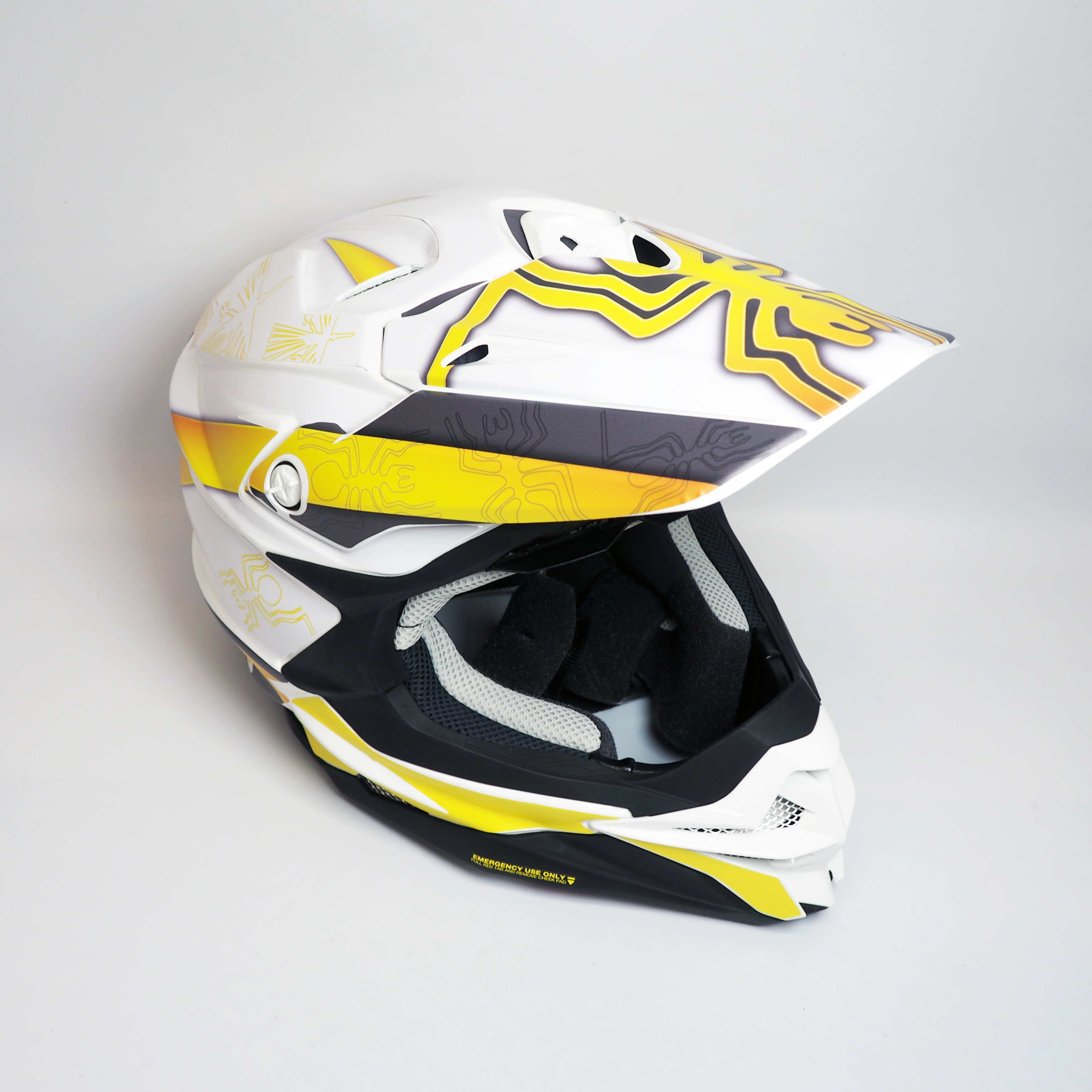 3カラー展開 VFX-WR用 ヘルメットデカール Mサイズ ナスカホワイト 地上絵 ナスカ オフロード ショウエイ モトクロス カラフル ステッカーセット バイク用品 オリジナルデザイン バイクヘルメット アクセサリー イメチェン 貼り替え シール 傷隠し かっこいい おしゃれ