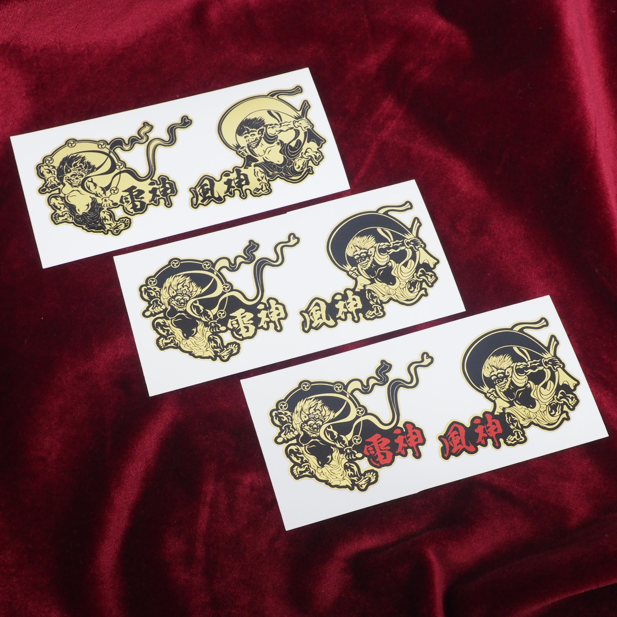 (マットゴールド)風神 雷神 金ステッカー ミニサイズ ワンポイント 縁起物 お守り 守り神 和風 和柄 カッティング 風神様 雷神様 シール デカール 屋外 防水 福の神 スマホ タブレット PC デコレーション 風神雷神