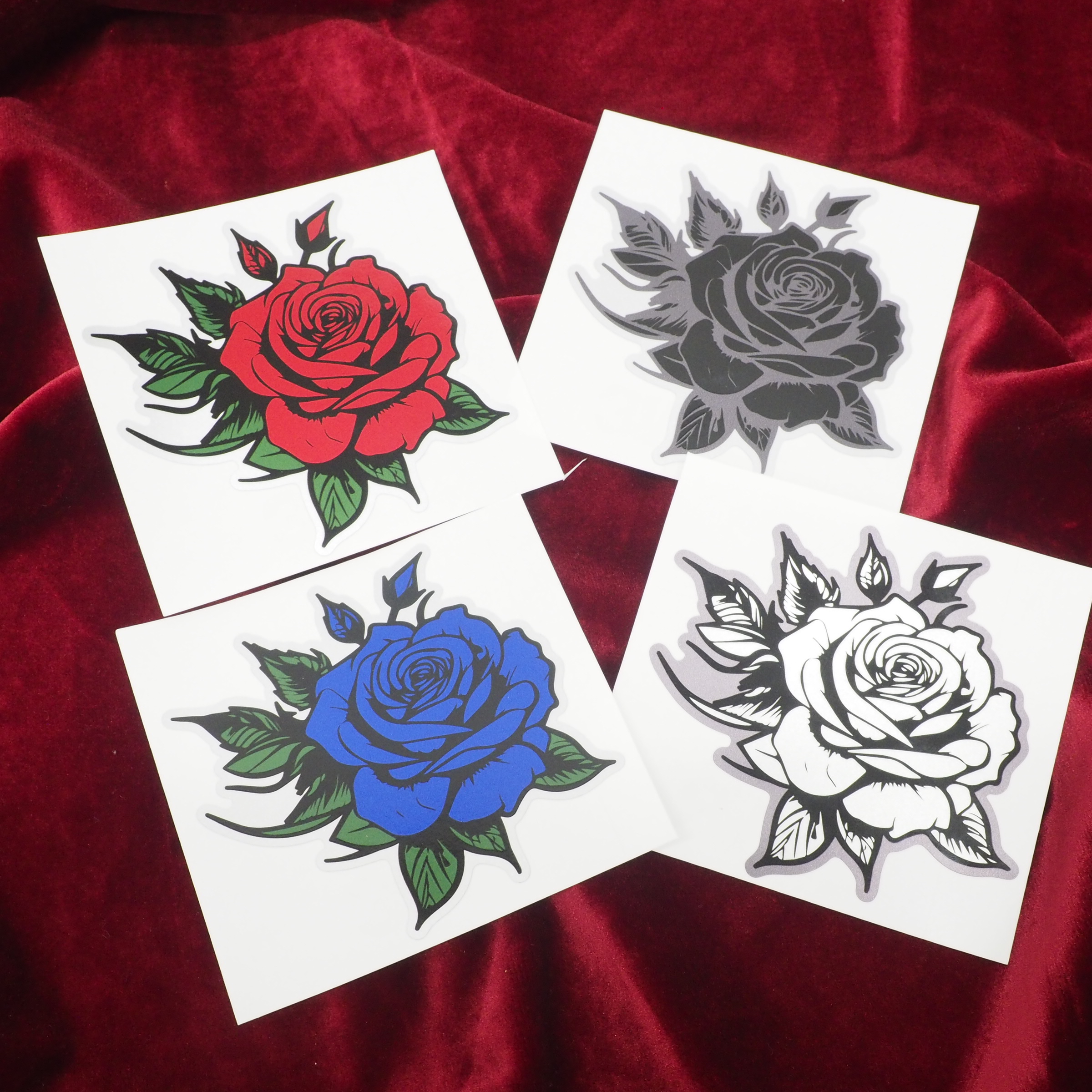 (シルバー)薔薇ステッカー【10cm】1枚 屋外 給油口 ヘルメット ローズ バラ ばら 花 植物 シール ROSE 屋内 ウォール ステッカー デカール 車 オートバイ スーツケース キャリーケース 防水 トランク 諺 名言 メタリック