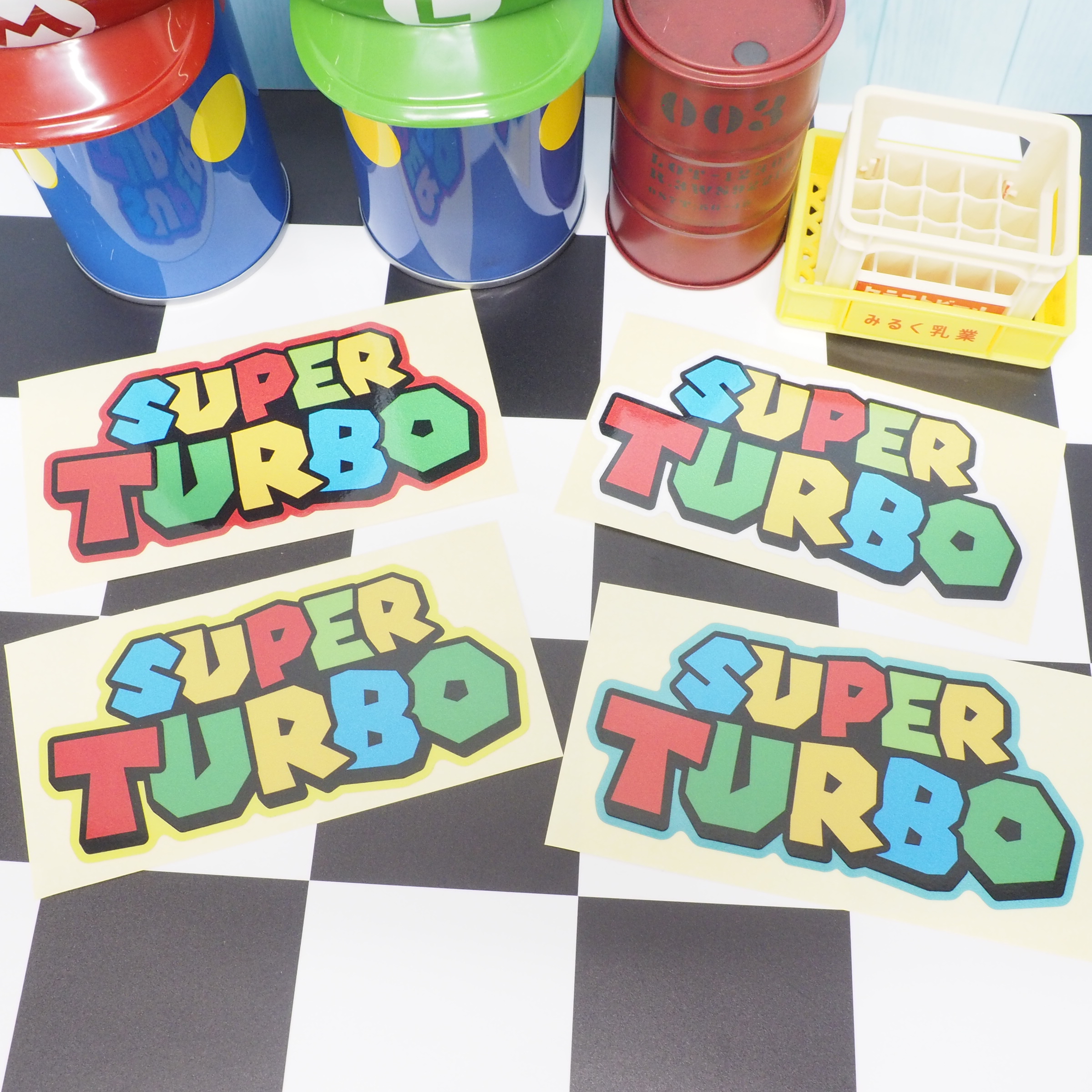 (反射)カラフルな スーパーターボステッカー 12cm 旧車 昭和 レトロ ツッパリ やんちゃ使用 絶版 絶滅危惧 シール デカール 車用 ドレスアップ 不良 おもしろ リターン 面白 ワンポイント superturbo