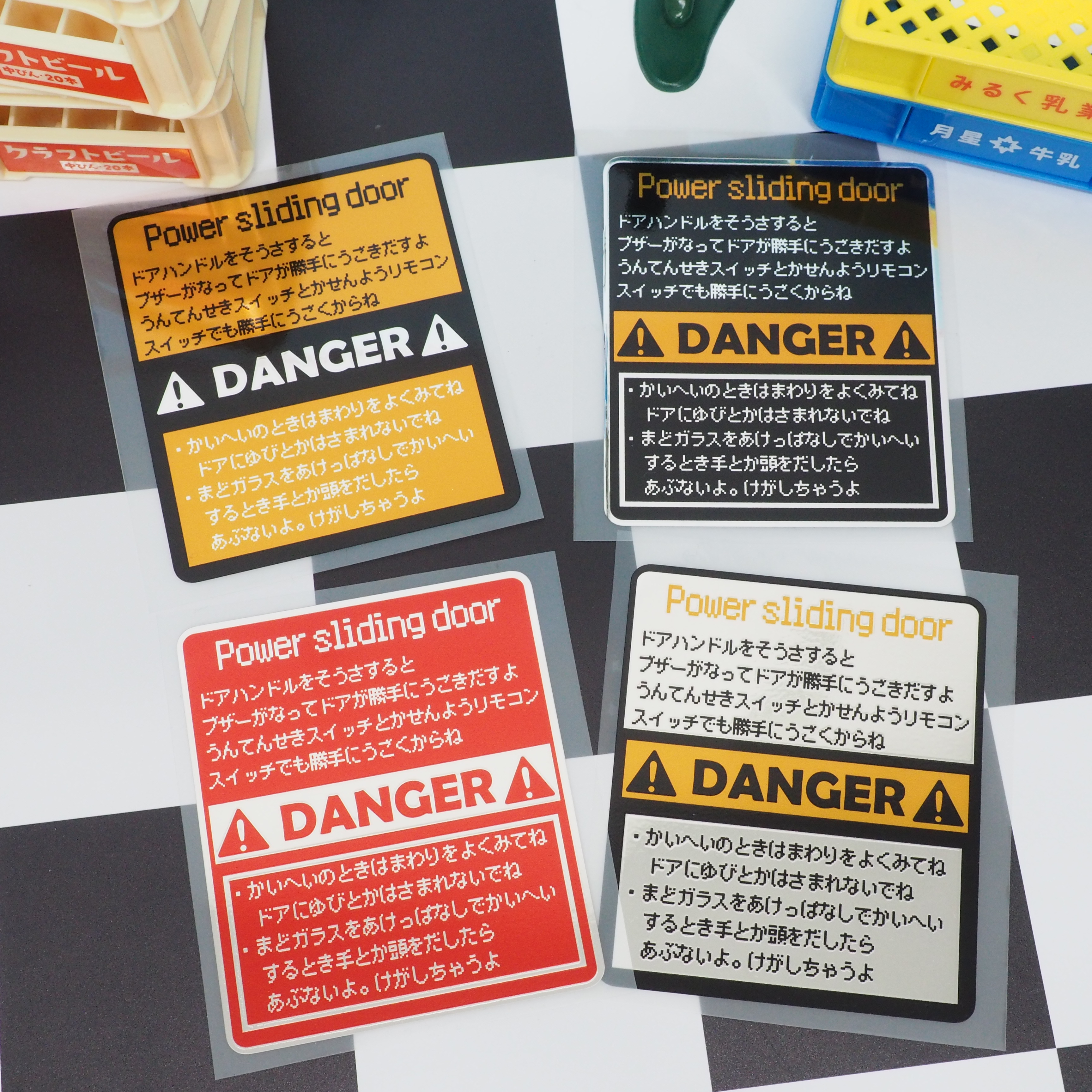 (ミラー) 面白 パワースライドドアステッカー 【8cm】コーションシール コーションラベル 注意書き ミニバン 軽四 ファミリーカー ヴォクシー ステップワゴン エブリィ ハイエース
