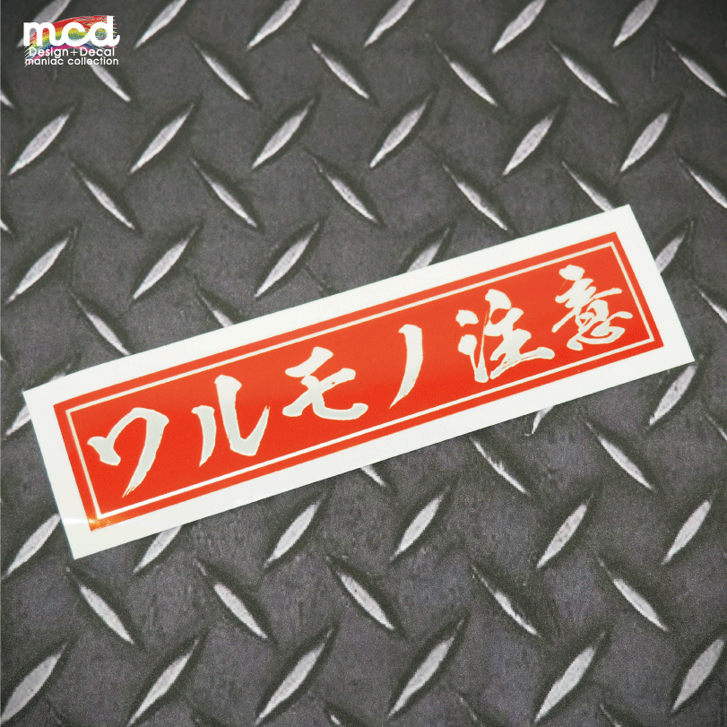 (マットミラー) 文字ステッカー【ワルモノ注意】 1枚 12cm 愛車 バイク 車 ヤンキー 走り屋 環状族 暴走族 旧車 JDM 峠 ステッカーチューン 防水 耐水 シール 日の丸 四角タイプ KANJI JAPAN STREET