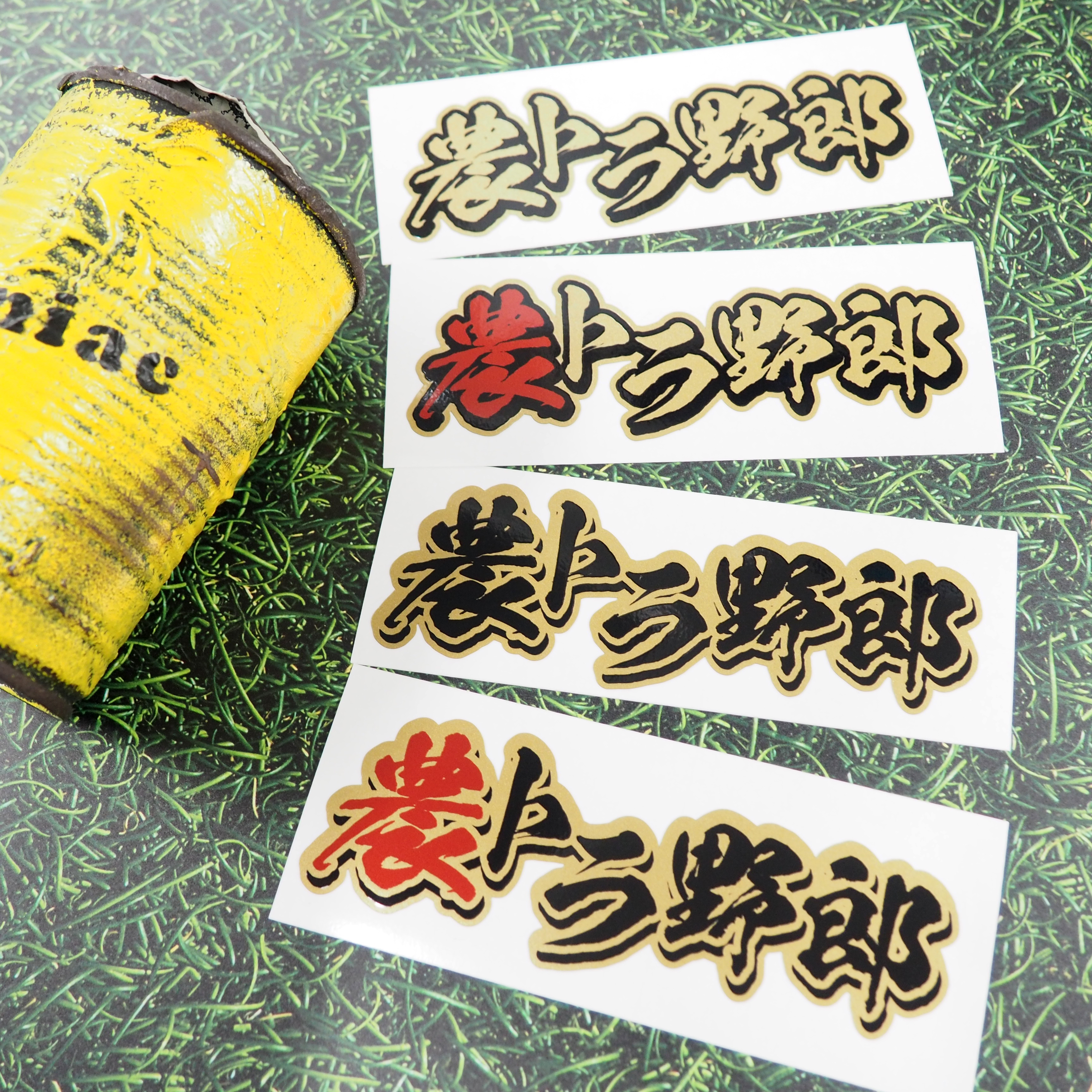 (ゴールド)農トラ野郎ステッカー 軽トラ 13cm シール デコトラ 軽トラック ステッカーチューン デカール ワンポイント おもしろ 和風 伝説 運送 自家用車 農業 かっこいい 漢字 和柄 農家 ファーム 農場