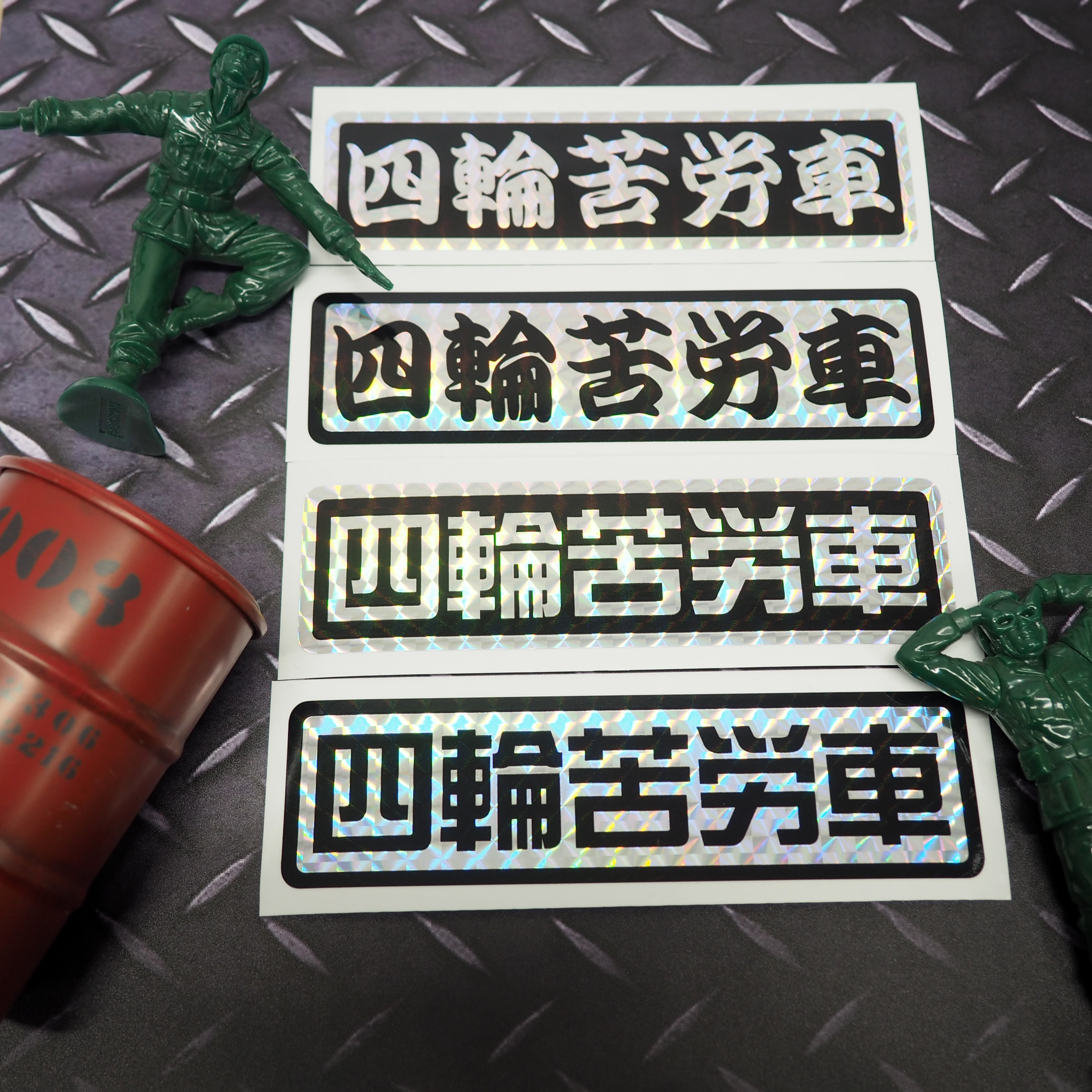 (ホログラム) 面白ステッカー 四輪苦労車 13cm AWD クロカン 山登り オフロード トライアル OFFROAD 四輪駆動 オフ車 防水ステッカー STICKER ジムニー JA22 JB23 MotorSports アウトドア おもしろ ワンポイント ランクル 旧車 ジープ ステッカーチューン