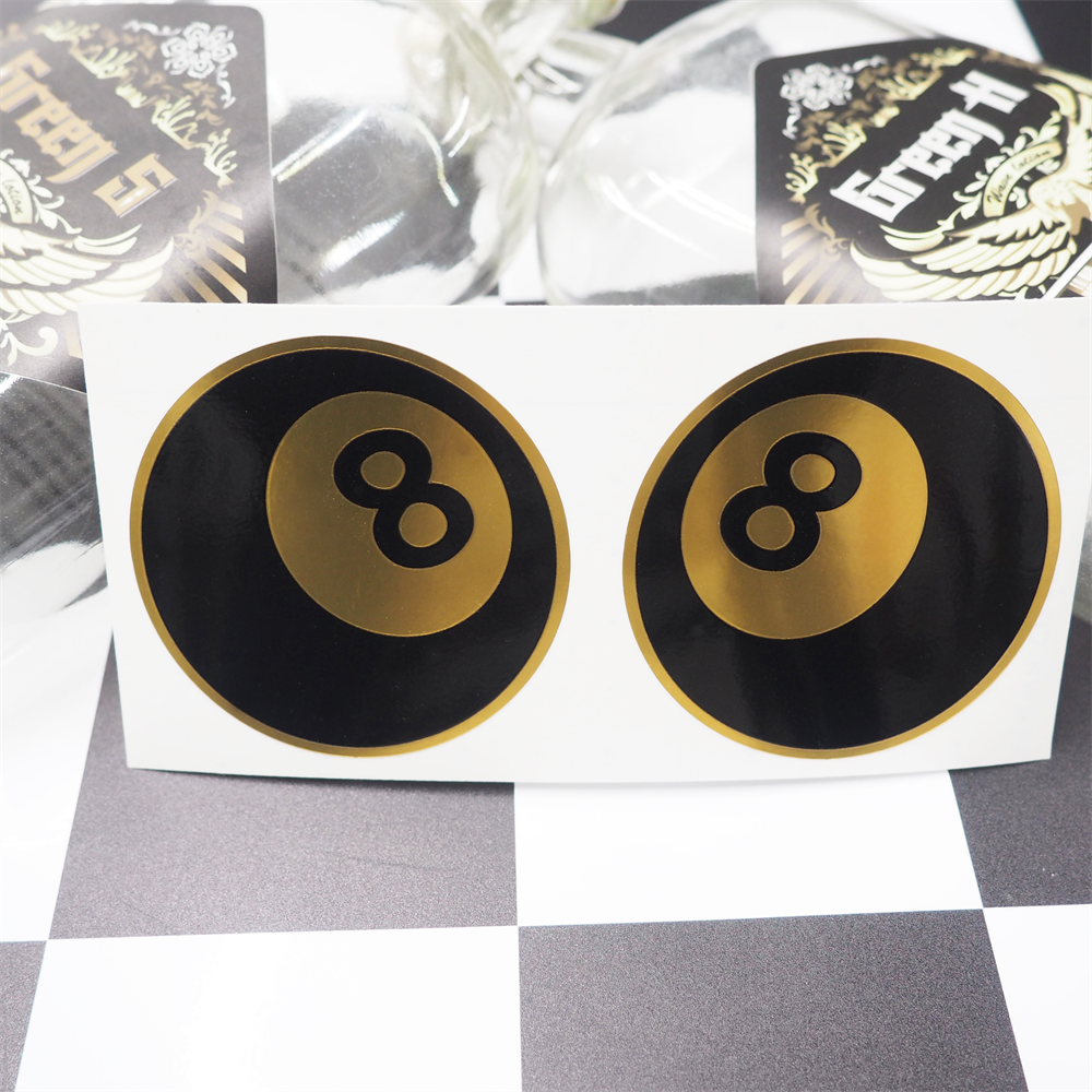 (マットゴールド) エイトボール ステッカー 左右セット 8ボール 8BALL 6cm ワンポイント アメリカン ビリヤード メタリック ヘルメット キャリーケース ステッカーチューン 金 かっこいい おしゃれ シンプル