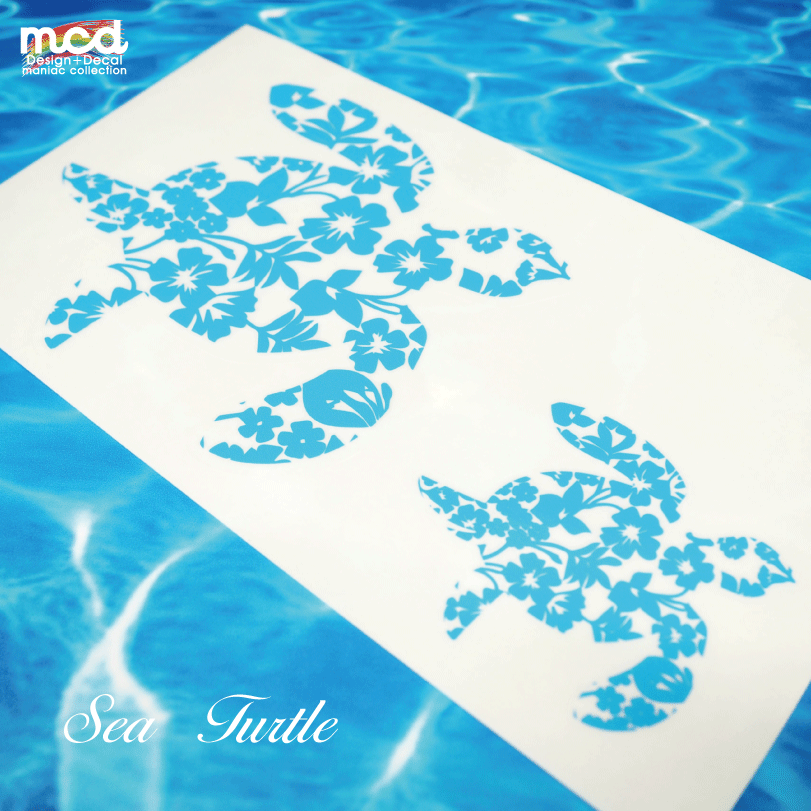 (透明) ウミガメ×フラワー ステッカー 大小2枚組 海 15cm Sea Turtle 海亀 花 華 サーフィン サーフボード アウトドア 可愛い 汎用 防水 ワーゲンバス キャンプ用品 ランクル 車用 かわいい かっこいい おしゃれ 釣り フィッシング サーフ 南国