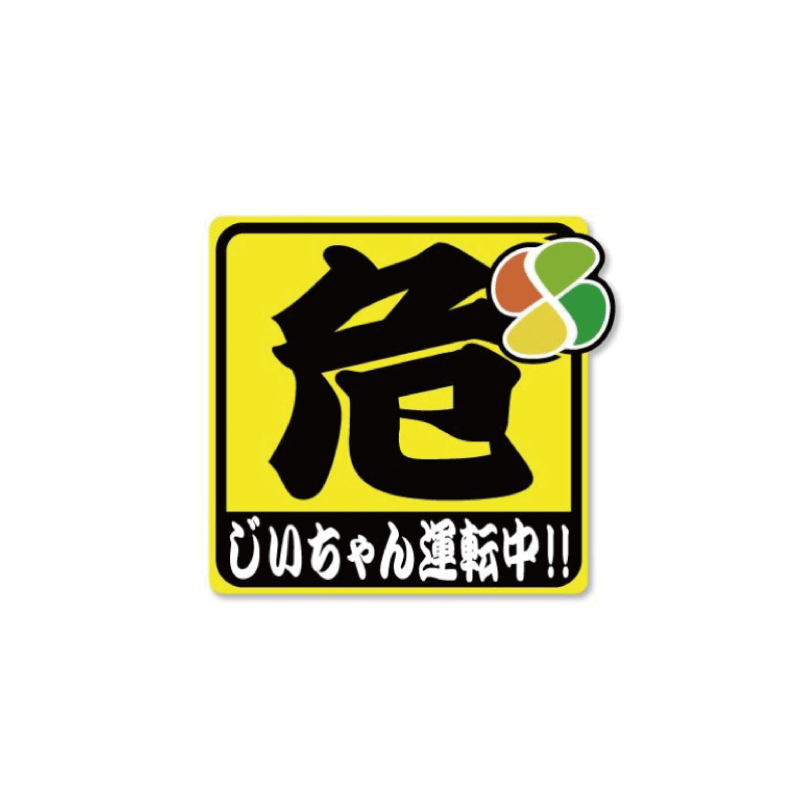 【反射】 シール 危険「じいちゃん運転中!!」ステッカー 1枚 15cm 初心者 高齢者 セーフティ 交通安全 安全運転 若葉マーク 紅葉マーク お助けステッカー シール 防水 UVカット ラミネート加工 夜間