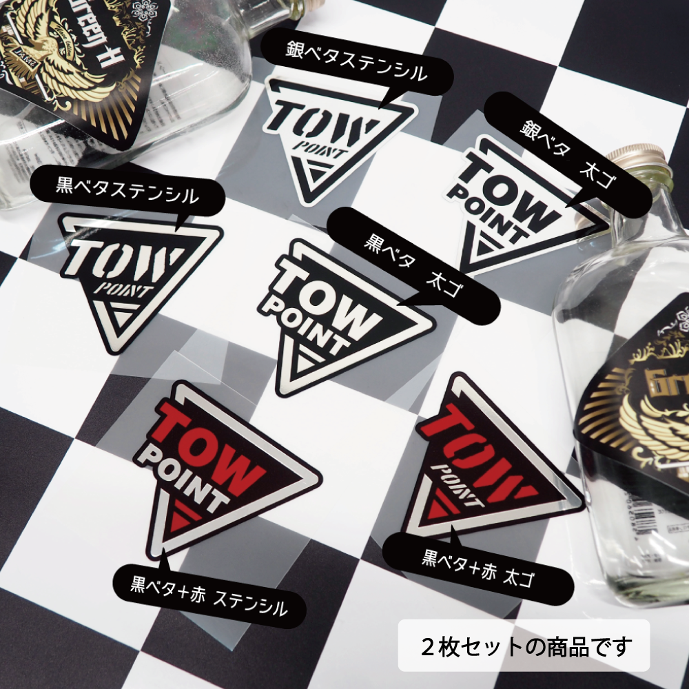 (ミラー) TOW POINT ステッカー 三角タイプ 小 2枚セット 牽引 牽引フック 車 カー 自動車 デカール シール 目印 レース レーサー サーキット ドレスアップ かっこいい おしゃれ シンプル ロゴ 耐水 屋外 印 セット レスキュー 走行会 リア フロント ボート アウトドア
