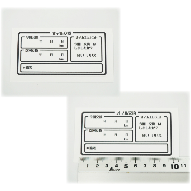 エンジンオイル交換ステッカー、シンプルなのもつまらない、ちょっと変わったのにしてみたい…