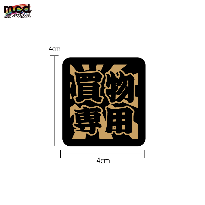 日章 漢字四文字ステッカー【買物専用】ゴールド 4枚セット 4cm 愛車 バイク 車 ヤンキー 走り屋 暴走族 旧車 JDM 峠 ステッカーチューン 防水 耐水 シール 日の丸 四角タイプ KANJI JAPAN STREET