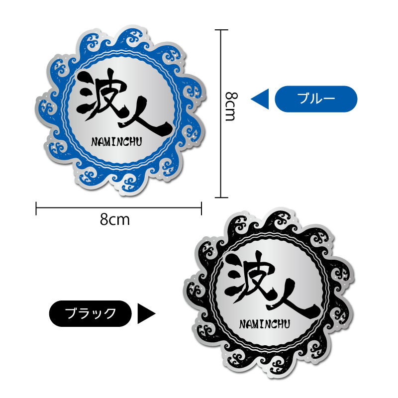 漢字と波柄を合わせたシンプルおしゃれな波人ステッカーです。