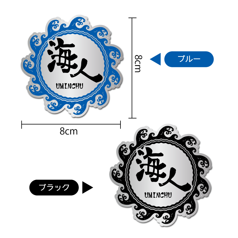 漢字と波柄を合わせたシンプルおしゃれな海人ステッカーです。