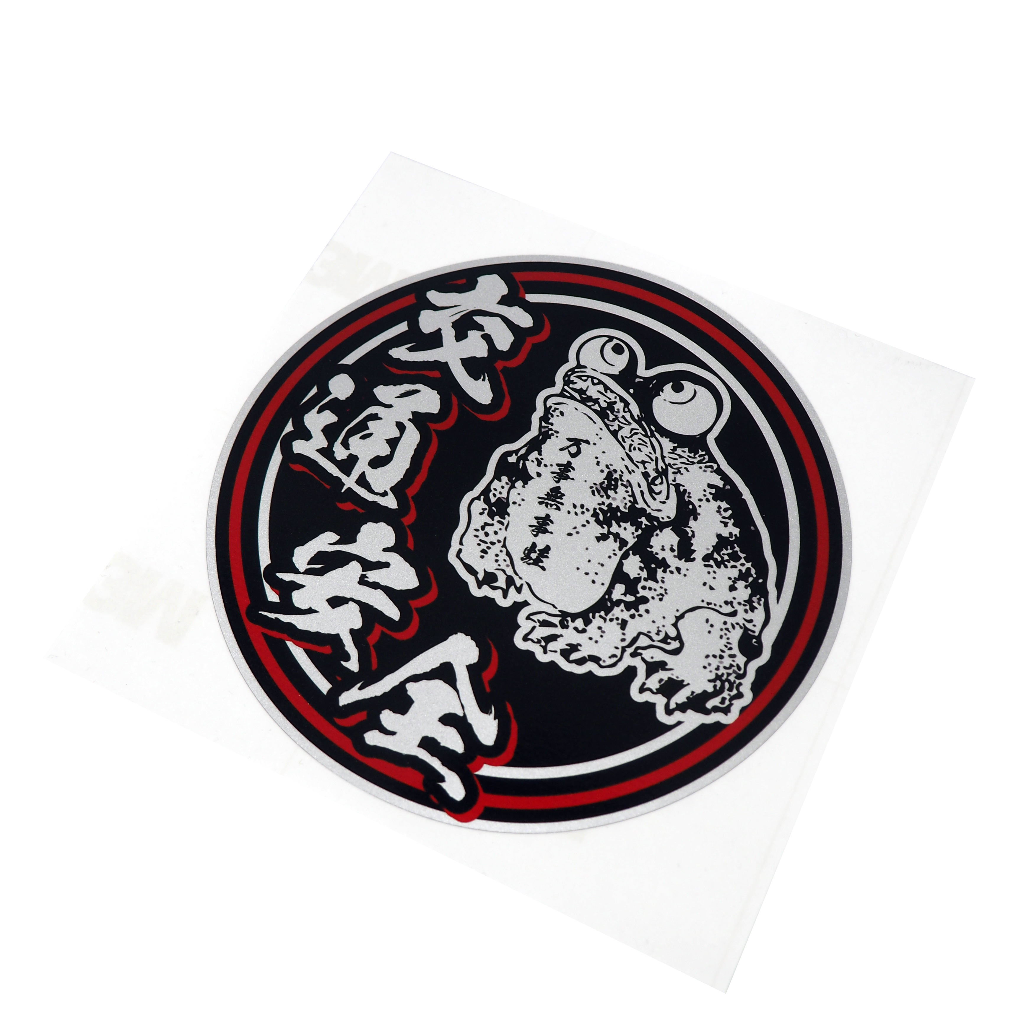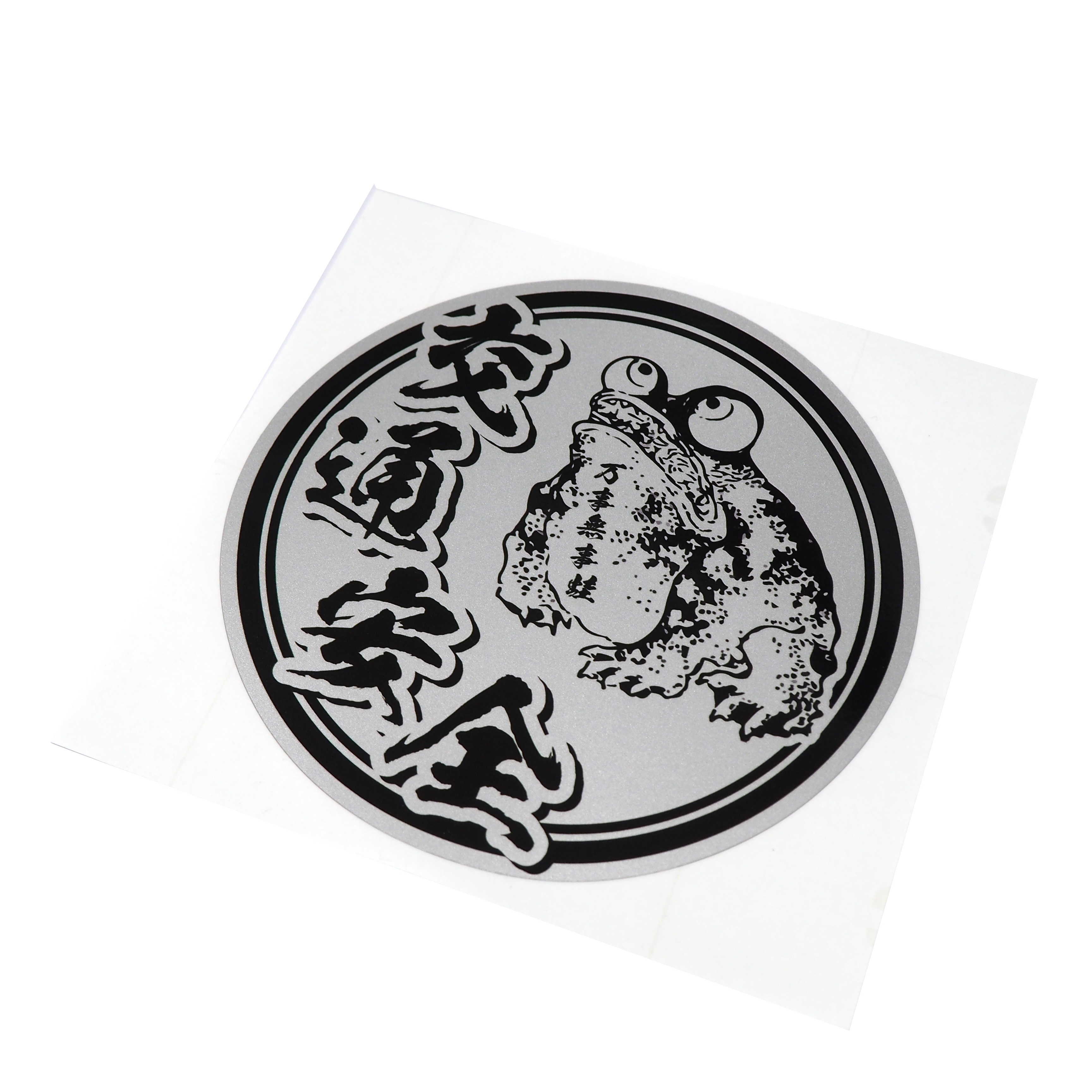 高級感のあるシルバー素材です。渋い蛙のデザインで一味違う交通安全ステッカーはいかがでしょうか。トラックなどの大型車両に映える大き目サイズですので、これ1枚でバシっときまります!